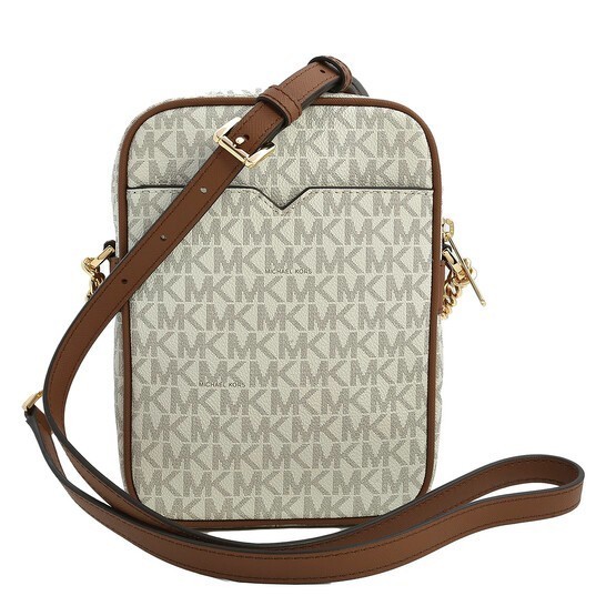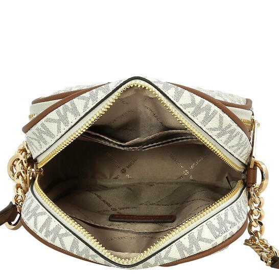 Michael Kors Vanilla Signature Logo Jet Set Travel Medium Crossbody. Made from logo-print canvas, featuring a gold-tone hardware, zip fastening, 100% polyester lining, back slip pocket, front zip pocket and a spacious interior with multi-function pockets.