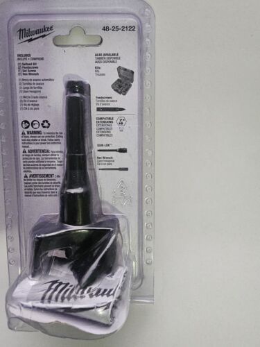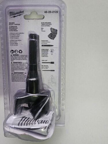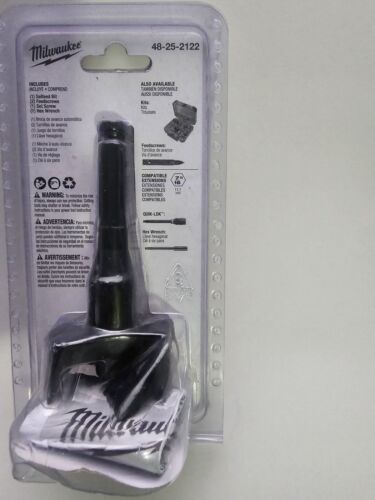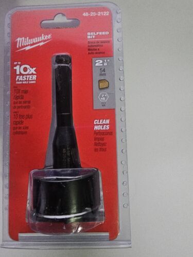 You are Buying a Brand New And Factory Sealed Milwaukee 2-1/8 in. High-Speed Steel Self-Feed Bit..... Milwaukee Selfeed drill bit is coated with a rust inhibitor. Built to last and designed to perform, these Selfeed bits are re-sharpen able so you can keep them cutting like new. 2 feed screws are included. Minimum chuck size of 1/2 in. Drills large holes in wood. High-speed steel coated with a rust inhibitor for strength and durability. Removable and replaceable feed screw and the cutting edges can be sharpened. Faster, more accurate drilling: center feed screw pilots the bit and allows the bit to pull through fast