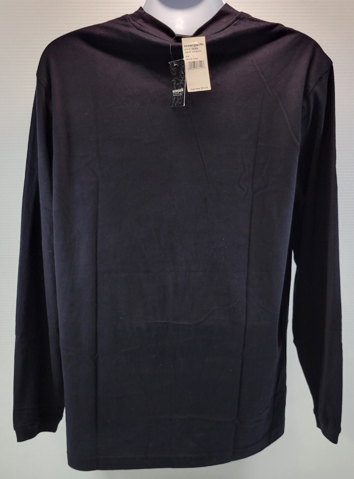 Saw Mill Auto Mall Black Long Sleeve Ocean Pacific Menswear T-Shirt 100% Cotton Large Approximate measurements: Shoulder to shoulder - 20" Shoulder to sleeve cuff - 25" Armpit to armpit - 20" Armpit to sleeve cuff - 19" Top of shoulder to bottom back - 28" Shirt is old un-used stock with original tags
