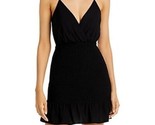 MSRP $68 Aqua Plunge Neck Smocked Mini Dress Black Size Large