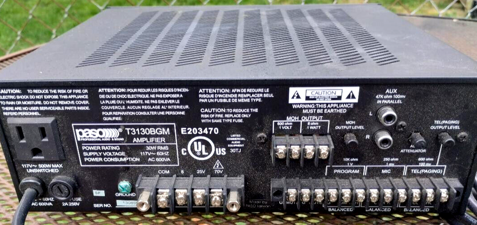 This was retail stock at a defunct electronics shop and consigned to an sale. Appears to work fine but I don't know what all of those connections are for so I can't test much, but it is offered as a working unit and guaranteed. Ideal for a small to medium sized business with paging and telephone connections but those could be useful at home as well when it is dinner time.