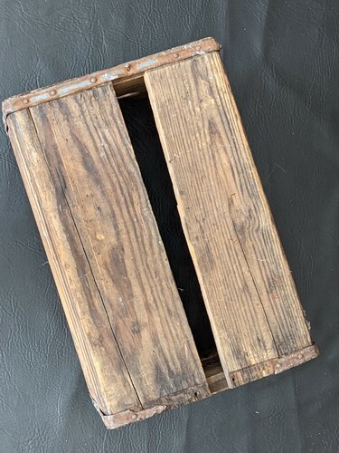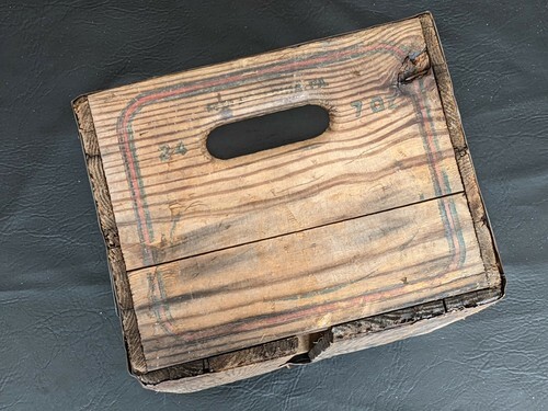 A vendre est une publicite de soda en caisse en bois pour biere de racine Old Fashion Ma tres utilisee qui mesure 10,5 x 8,5 x 16.