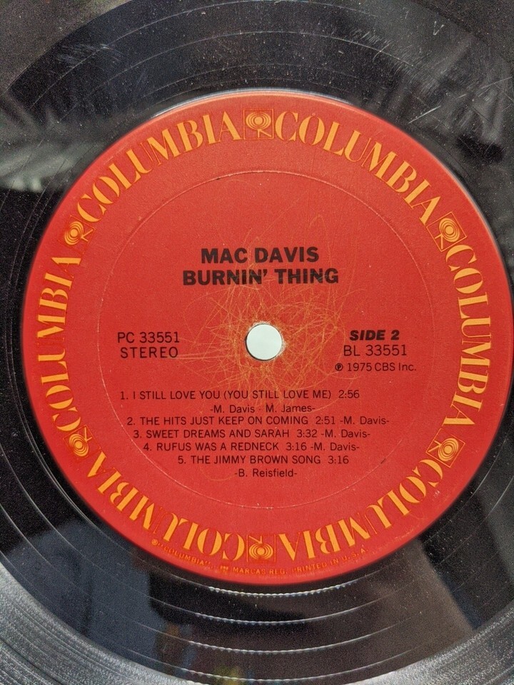 Mac Davis Burnin Thing Vinyl Record. Combined Shipping (for USA Customers Only)