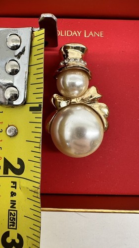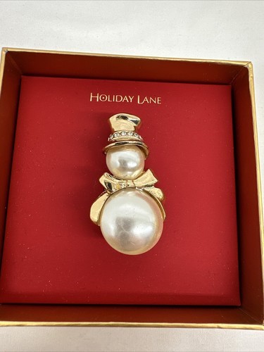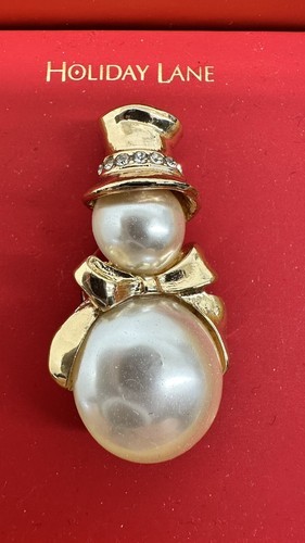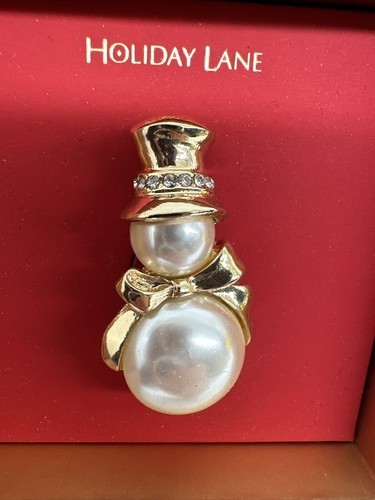 - Macys Holiday Lane faux pearls goldtone metal snow man pin