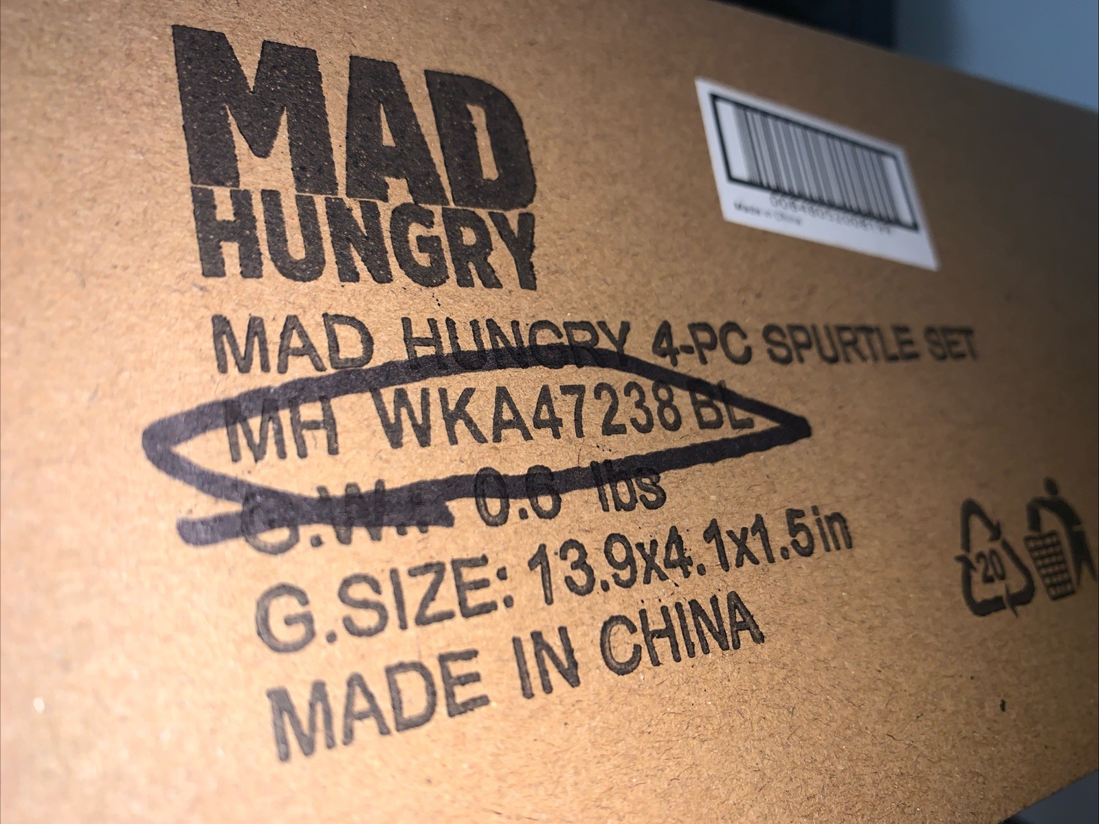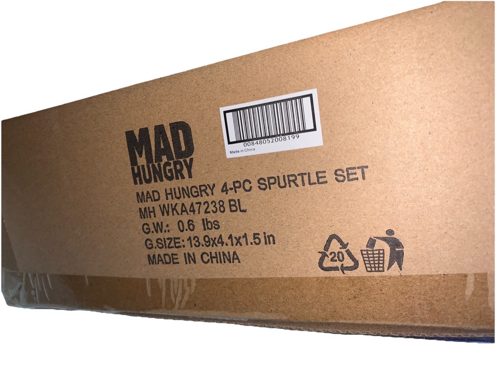 The Mad Hungry 4 Piece Spurtle Set features high-quality acacia wood utensils with ergonomic silicone handles in a vibrant blue color. These cooking utensils are ideal for stirring, serving, and spreading, making them versatile and lightweight for use with nonstick cookware. The set includes four spurtles, each designed for scraping and perfect for never used cooking enthusiasts looking for durable and stylish tools to enhance their kitchen collection. Made in the US by Mad Hungry, this set is a practical and visually appealing addition to any home kitchen.