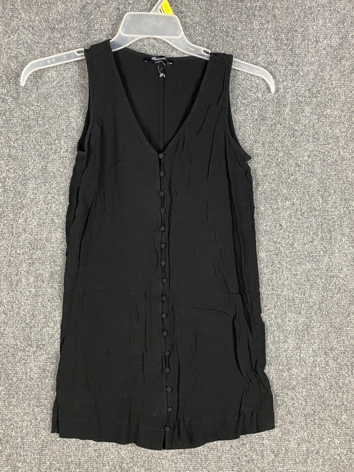 Primary image for Madewell Dress Women's XS Button Up Sleeveless Black 100% Viscose Extra Small