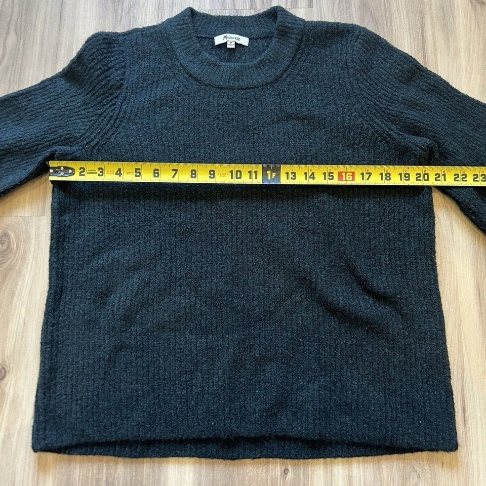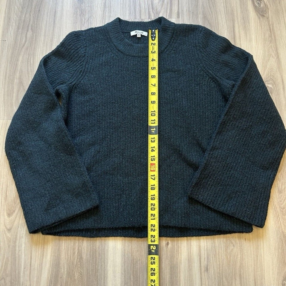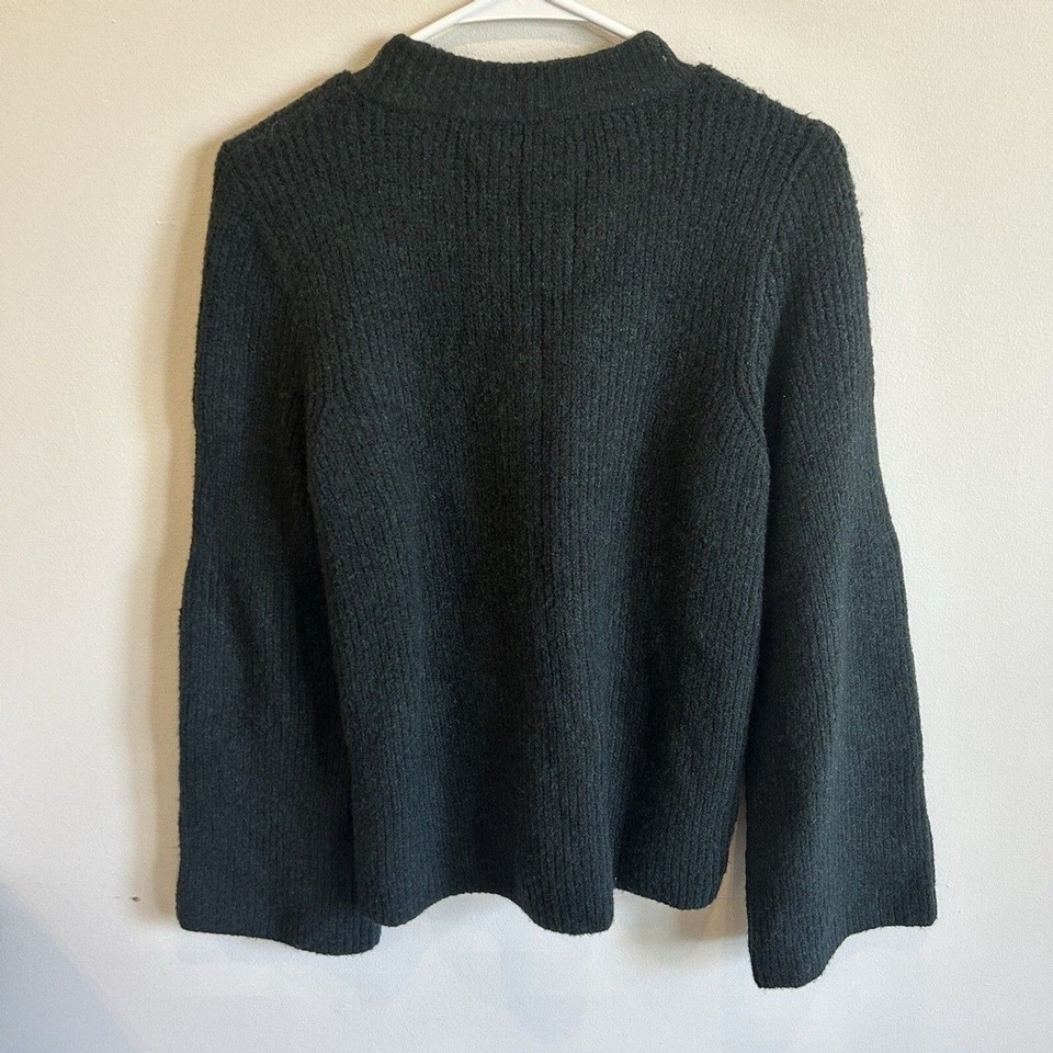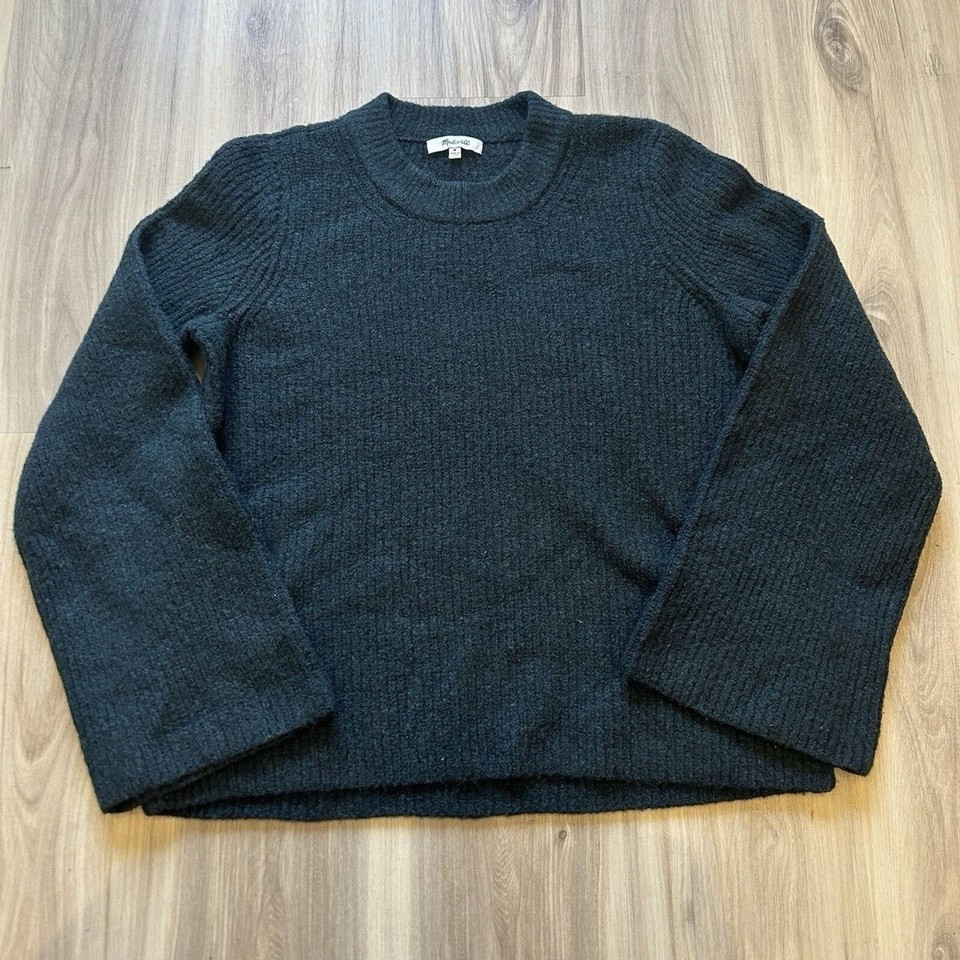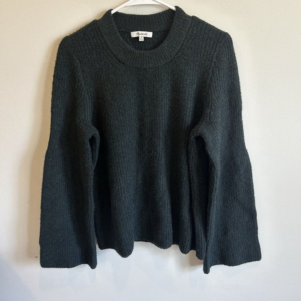 * Madewell crew neck sweater with bell sleeves * Material: 40% Nylon, 33% Acrylic, 25% Merino Wool, 2% Elastane * Size: M * Color: Spruce Green (I would describe it as a very rich bluish green) * Item is in great condition - no stains, rips, tears or holes * See photos for complimentary measurements and more information * Any questions, please ask Item ships securely via USPS Ground Advantage unless buyer would prefer to expedite for an additional cost.