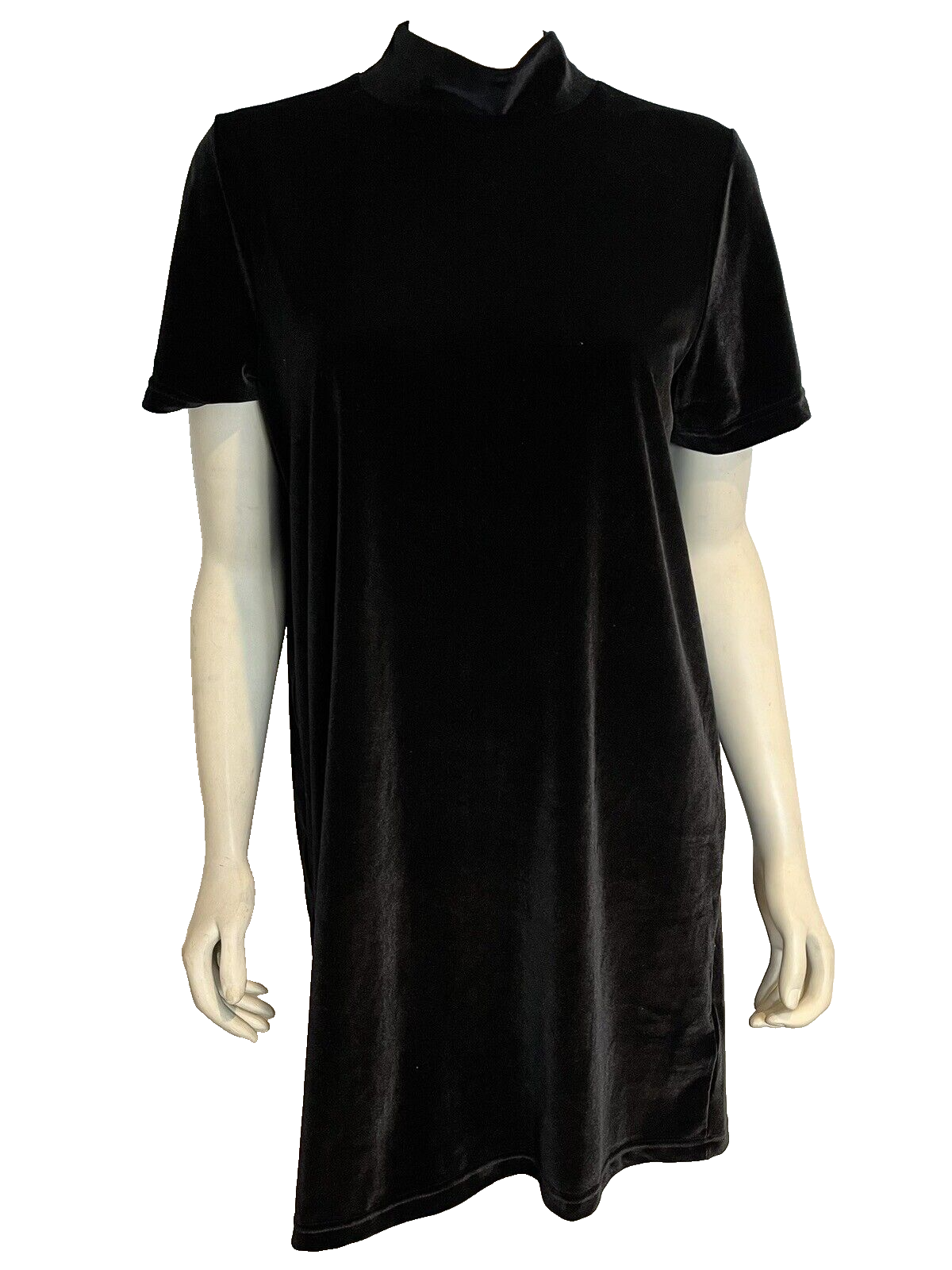 Madewell Women's Mock Neck Short Sleeve Velveteen Dress Black L