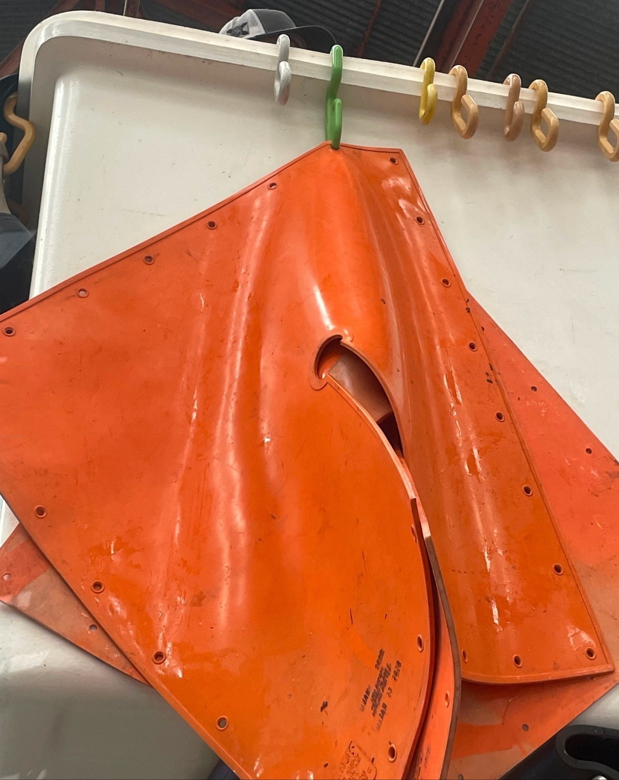 Tapered exterior hook has extra capacity and is compatible with up to 6 rubber blankets or tools and material bags