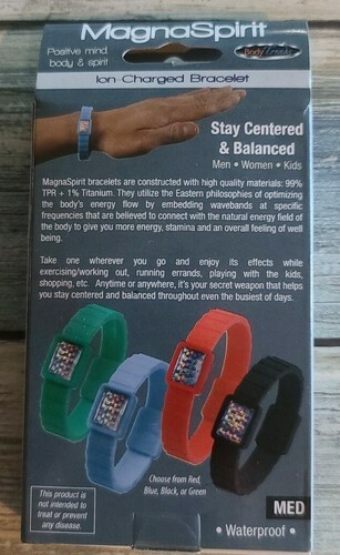 This sale is for one (1) MagnaSpirit brand bracelet Ion Charged Size Medium Measures approximately 8.25" diameter Black in color Stylish ~ Safe ~ Waterproof Unisex Constructed with high quality materials ~ 99% TPR ~ 1% Titanium Utilized Eastern philosophies of optimizing the body's energy field of the body to give you more energy ~ stamina and an overall feeling of well being This bracelet is brand new in original packaging Please view photos for a good description of this item Thank you!