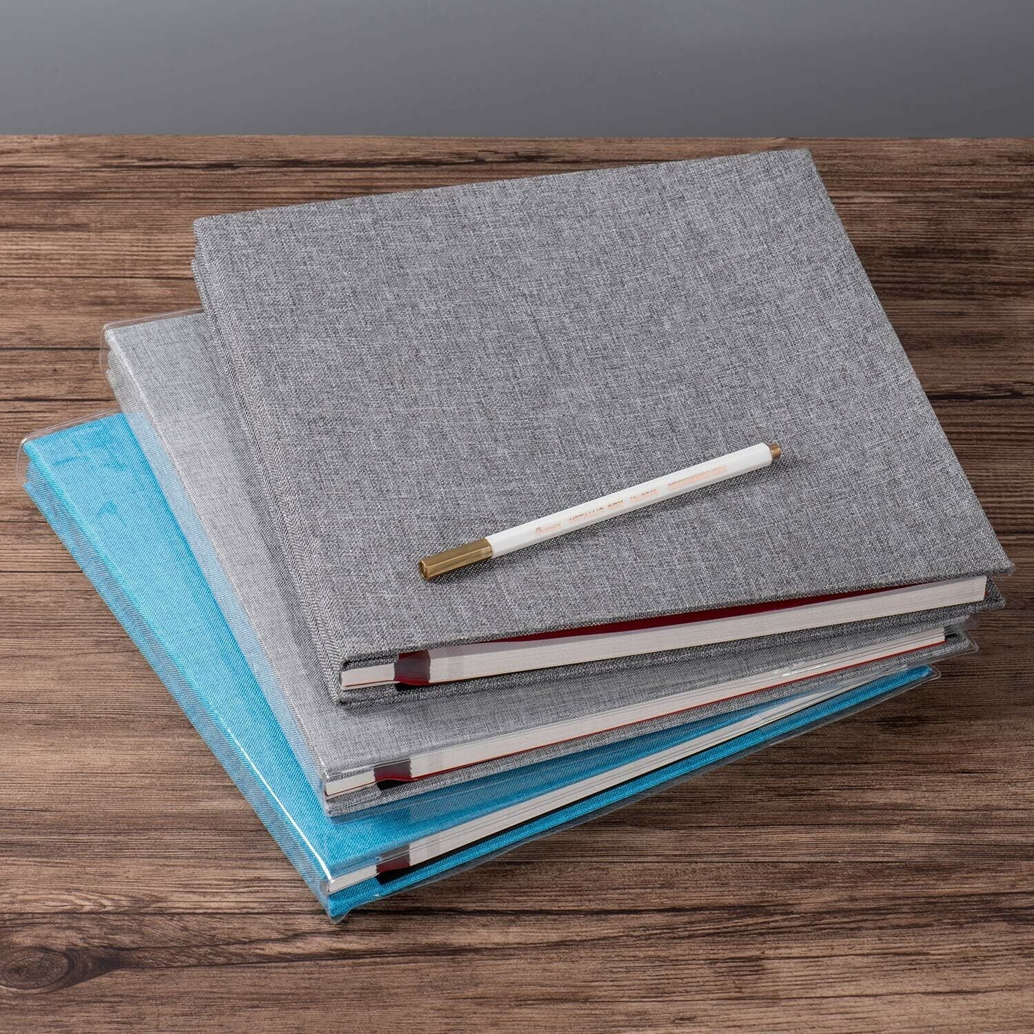 - Magnetic Self-Adhesive Scrapbook Album - 120 Photo Capacity, Grey Linen