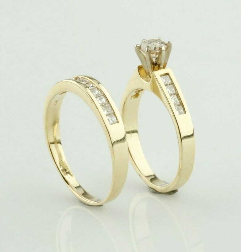 - Magnifique 14k or Jaune Mariage Ensemble Avec .44 CT Rd Solitaire & Accents