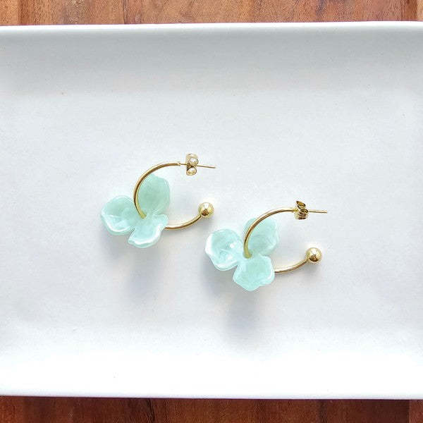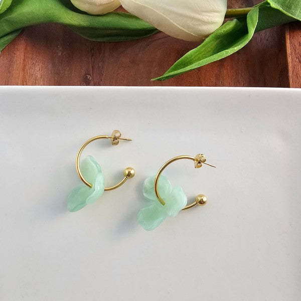 Add a fun twist to your hoop collection with our Magnolia Hoops in White! Featuring sleek gold hoops adorned with vibrant resin flowers, these earrings bring a playful pop of color to any look. Perfect for turning heads and brightening your style, they're the ultimate accessory to stand out from the crowd.