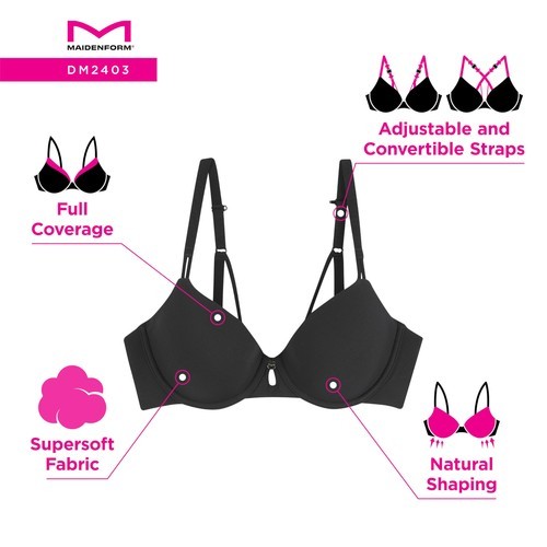 - Maidenform Women's Underwire, Everyday Luxe T-Shirt, Full Coverage Bra, Black