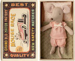 - Maileg Little Sister Mouse in Matchbox – Pink Pajamas, Collectible Doll