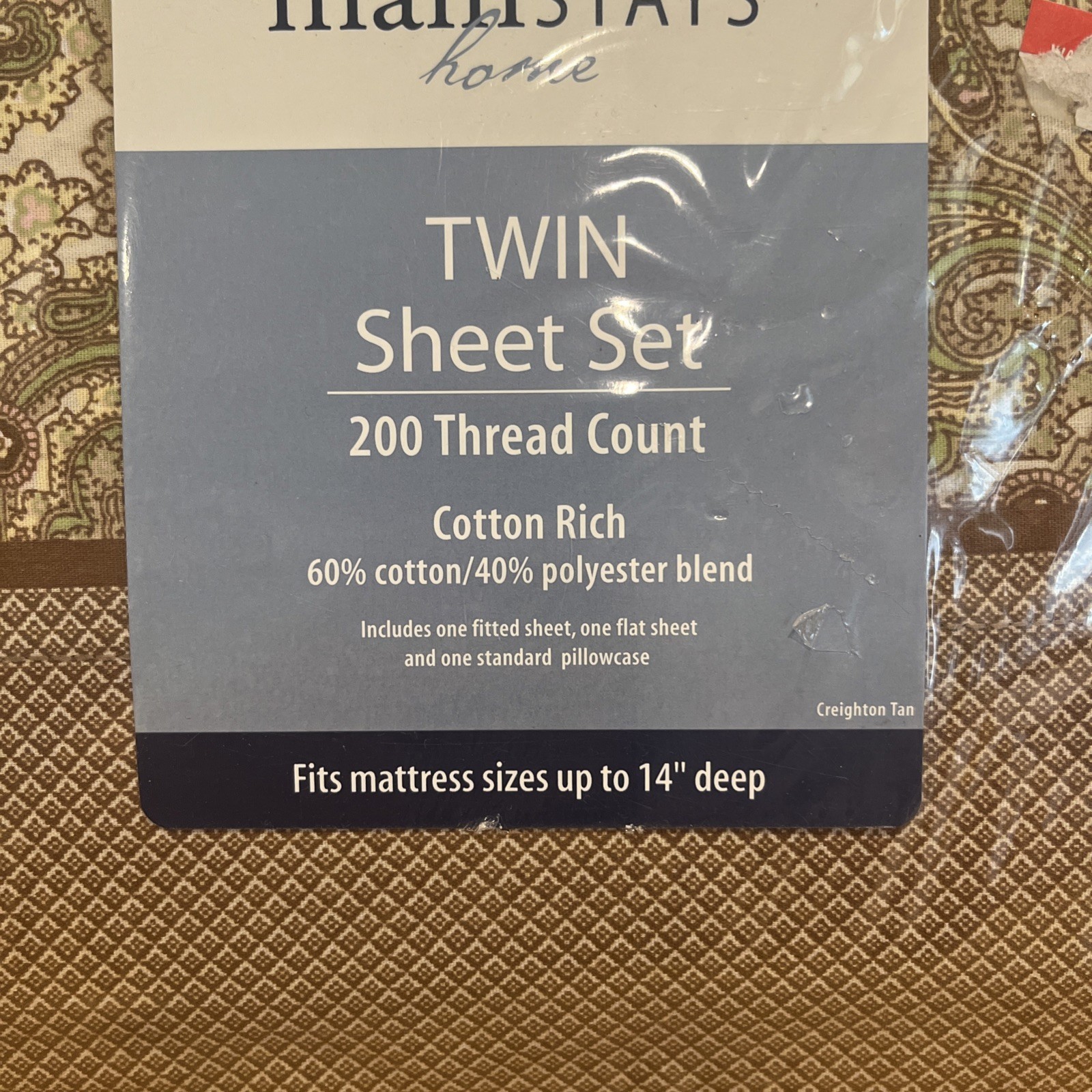 - MainStays Twin Sheet Set Creighton Tan 200 TC FLORAL SHEETS Pink Tan Paisley