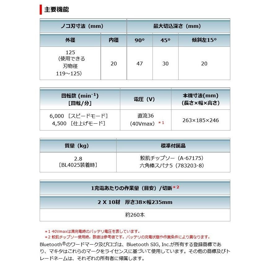 Makita HS005GZB Rechargeable Maruonoko (black) 125mm with chip saw (battery, charger and case sold separately)