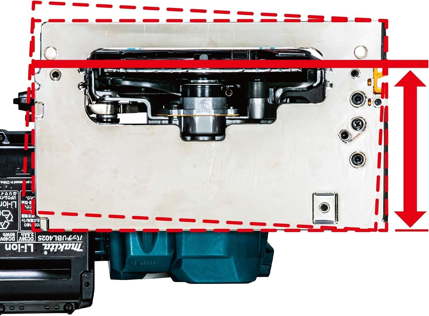 Work capacity per charge (approx.) / Cutting : 2 X 10 material, 38 mm thick x 235 mm wide ... approx. 260 pcs.