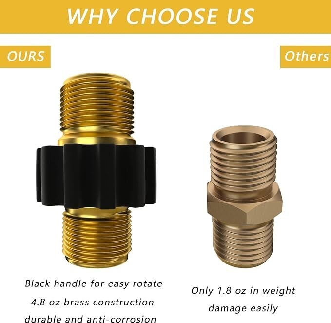 Prime Quanlity: Pressure Washer Hose Connector has corrosion resistance. It is the best choice for both environmental protection and practicality! At the same time, is made of high quality brass.