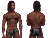 From the Fetish collection by Male Power, this style includes: A cutout cage short featuring studded fabric straps with metal rings. 85% Polyester 15% Spandex. Hand Wash Separately, Cold Water, Line Dry, Do Not Bleach