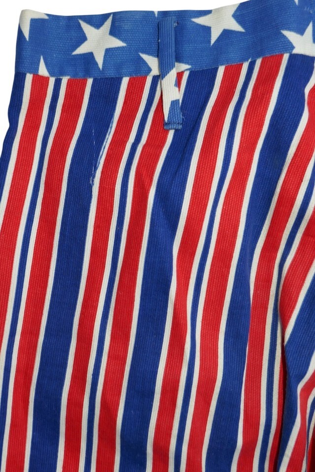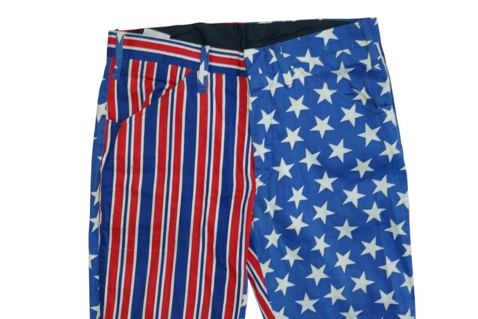 This is a pair of vintage Male Slacks Jeans with an American flag design of stars and stripes. The pants feature a mid-rise fit with a flared style, classic denim fabric, and a multicolor striped pattern. They measure approx. 14.5" across the waist with 29.5" inseam. These do have some flaws due to age - yellowing, small spots and torn fabric around the fastener. Perfect for summer, fall, and spring, these slacks offer a comfortable and stylish option for women looking to make a statement. See photos for item condition, this is a picture of the actual item. All reasonable offers considered!! **Payment** We do expect payment within 48 hours of the purchase. If for some reason you need a couple of extra days, please let us know. **Feedback** Once you have received your item, if you are satisfied, please leave feedback. We are happy to leave feedback for you after you have left feedback for us to let us know that you have received your item and the transaction is complete. Please contact us before leaving feedback if there is a problem. **International Buyers ? Please Note** Import duties, taxes, and charges are not included in the item price or shipping cost. These charges are the buyer's responsibility. Please check with your country's customs office to determine what these additional costs will be prior to bidding or buying. Check out our store for more deals!!