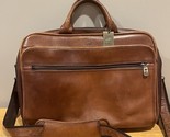 This Mancini Men's Leather Signature Double Compartment Briefcase in Brown is a stylish and functional accessory for Unisex Adults. The briefcase features a zip closure, adjustable leather strap, and a detachable strap. It has a medium size and is made of high-quality leather with a fabric lining.