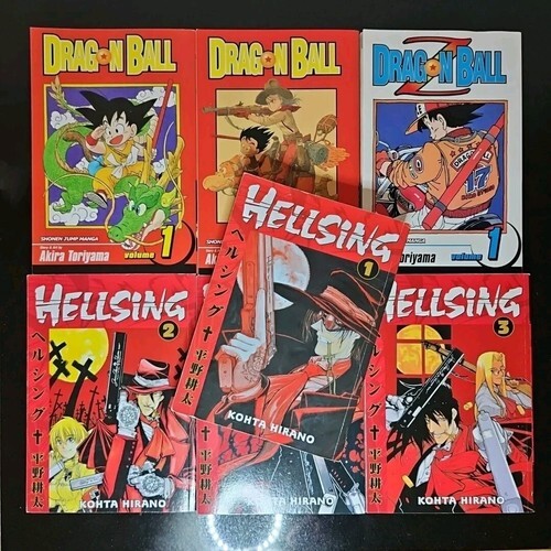 Dragon Bal, Dragonball Z and Hellsing Manga Mixed Lot Of 7 Graphic Novel English Akira Toriyama Dragon Ball Z Volume 1 10th printing 2008 Dragon Ball Volume 1 13th printing 2010 Dragon Ball Volume 2 8th printing 2009 Hellsing Volume 1 First Edition 2003 Printed in Canada Hellsing Volume 2 First Edition 2004 Printed in Canada Hellsing Volume 3 First Edition 2004 Printed in Canada Hellsing Volume 4 First Edition 2004 Printed in Canada