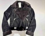 The Mango MNG Women's Faux Leather Jacket in black, size small, is a stylish and versatile bomber jacket perfect for casual occasions. Made of polyester with a shearling faux lining, this jacket features long sleeves and a lined closure for added warmth and comfort. It has a solid pattern and a motorcycle theme, making it a fashionable choice for the winter and fall seasons. Handmade and with a regular fit, this jacket from the reputable brand Mango is a must-have addition to any woman's wardrobe.