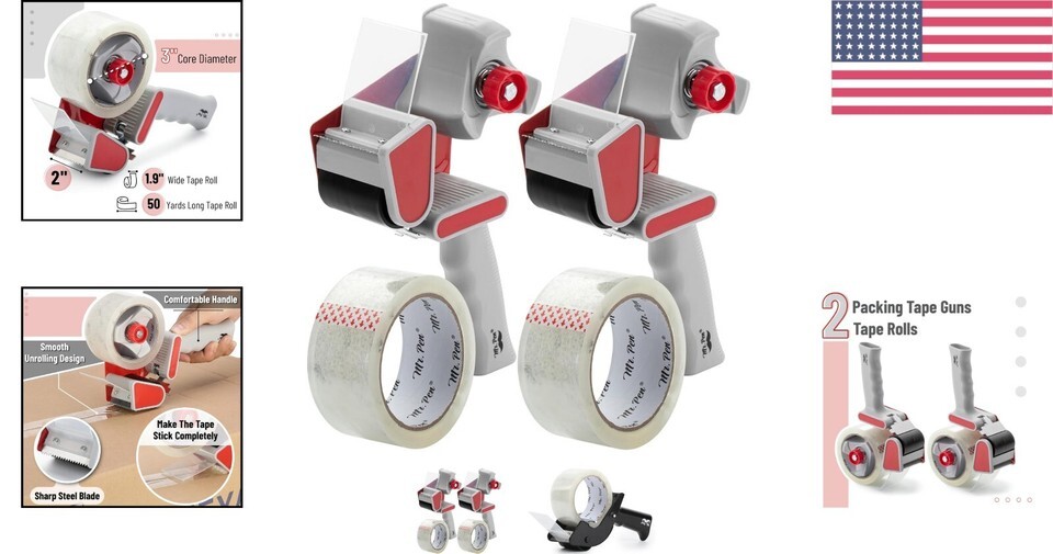Includes 2 tape guns and 2 rolls of packing tape for immediate use.