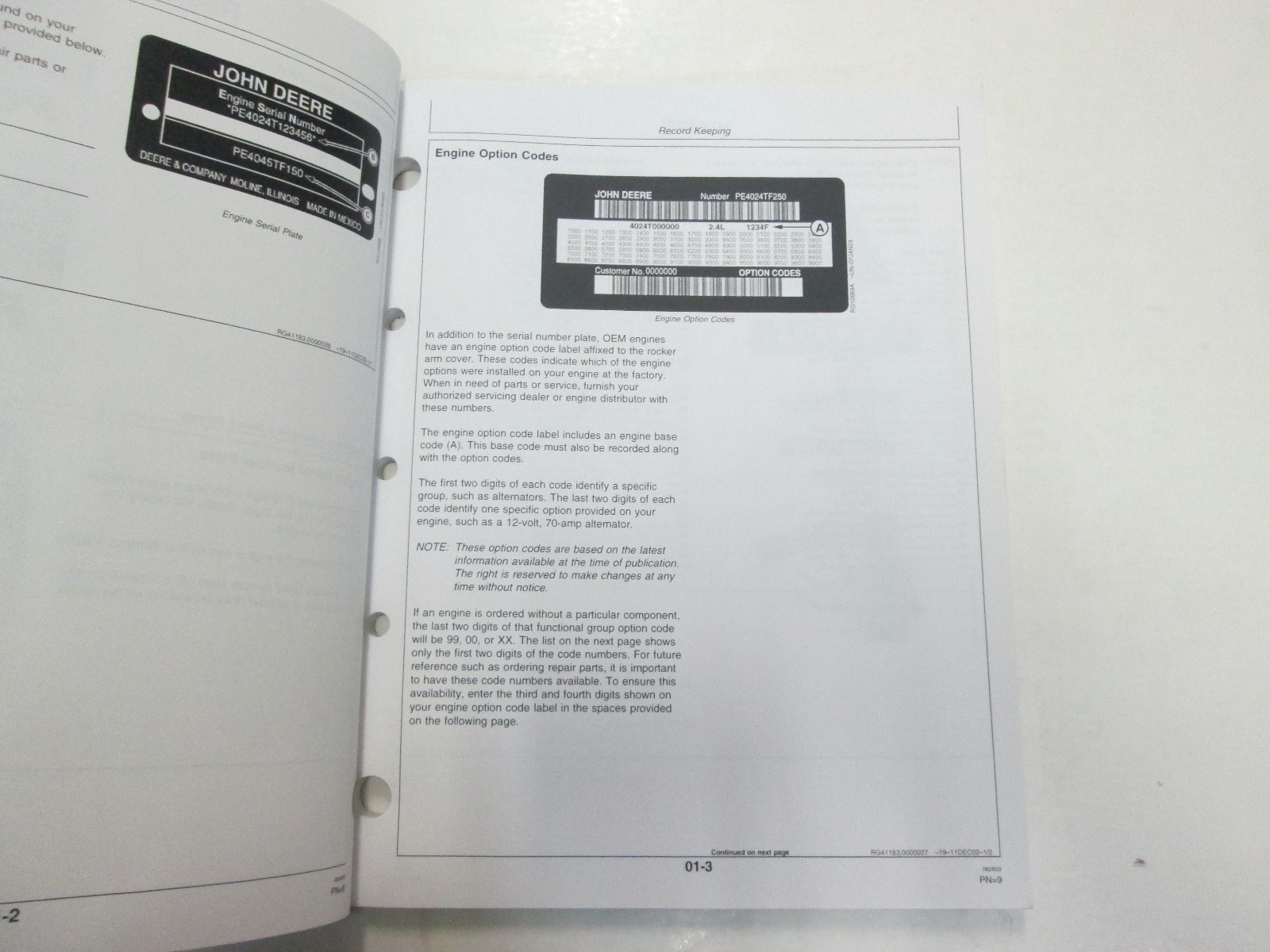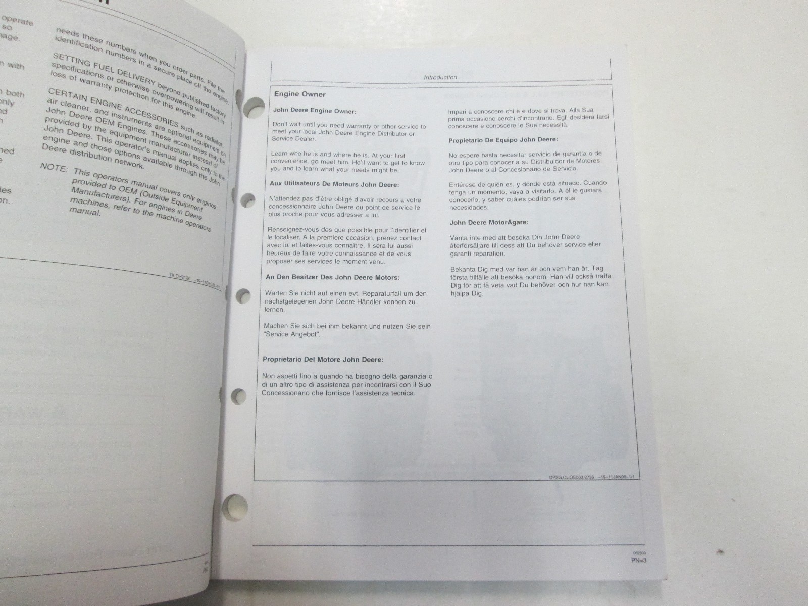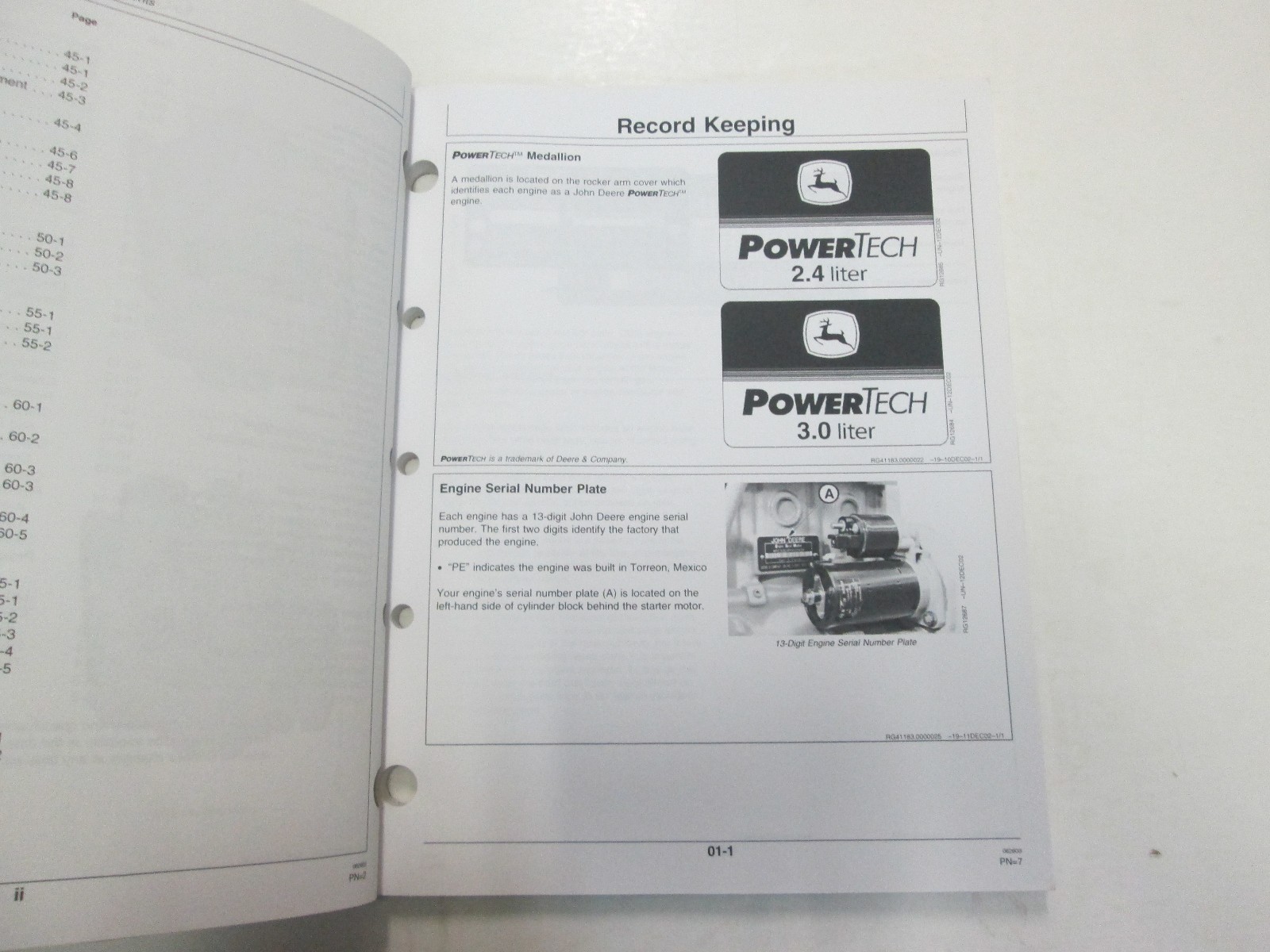 John Deere Powertech 4.5 L 6.8L Motori Diesel Operatori Manuale OMRG33324 Worn