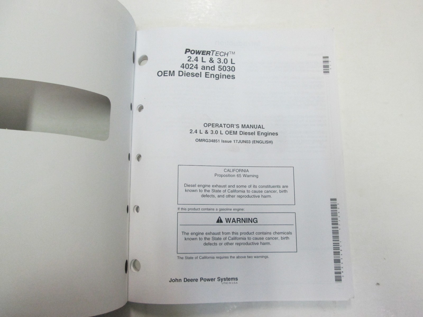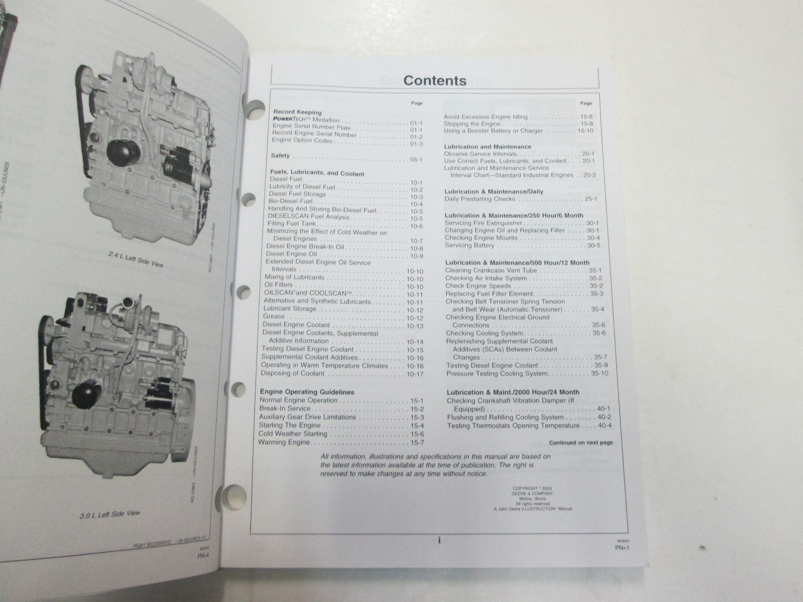 John Deere 2.4 L 3.0 L Dieasel Motori Manuale OMRG34851 17JUN03 PATERE