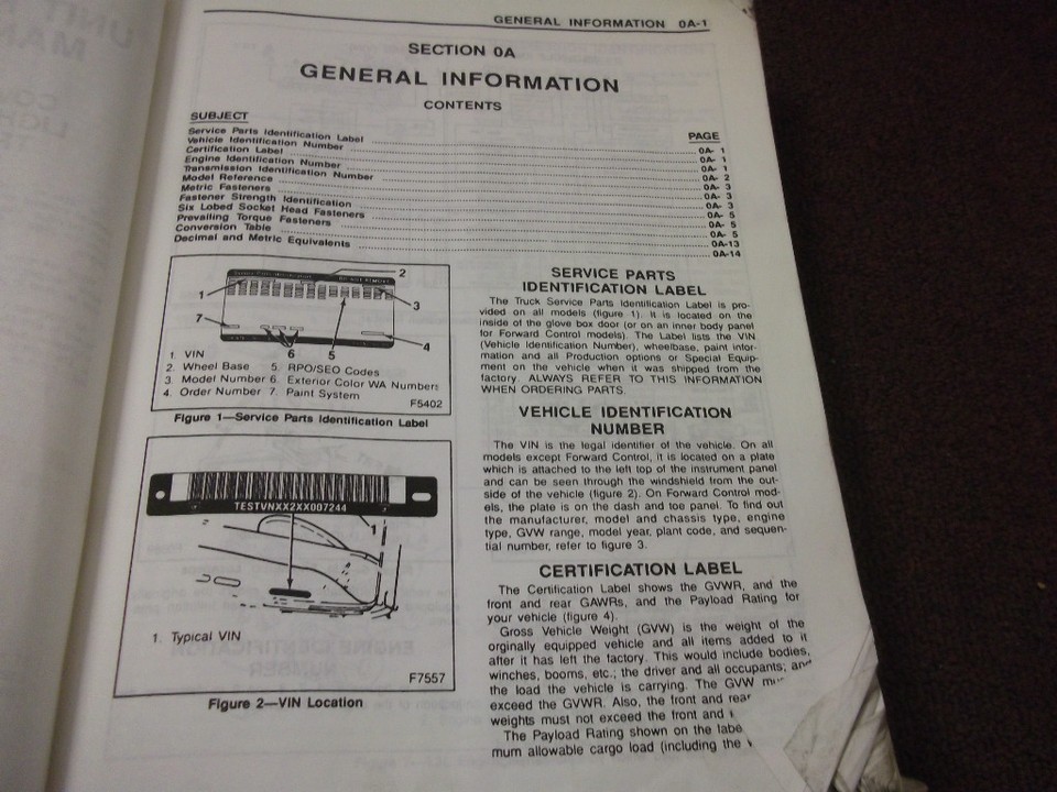 Manuel De Reparation De Service OEM Pour Camion Chevrolet Chevy S-10 S10 1990