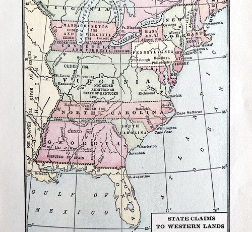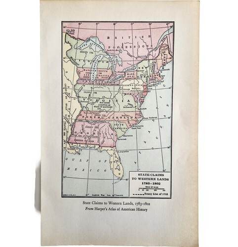 - Map 1930 State Claims Western Lands c1783-1802 5.5 x 9" Offset Lithograph DWEE2