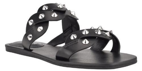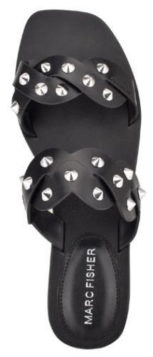Marc Fisher Bodil Size US 5.5 M Women's 2-Band Studded Slide Flat Sandals Black