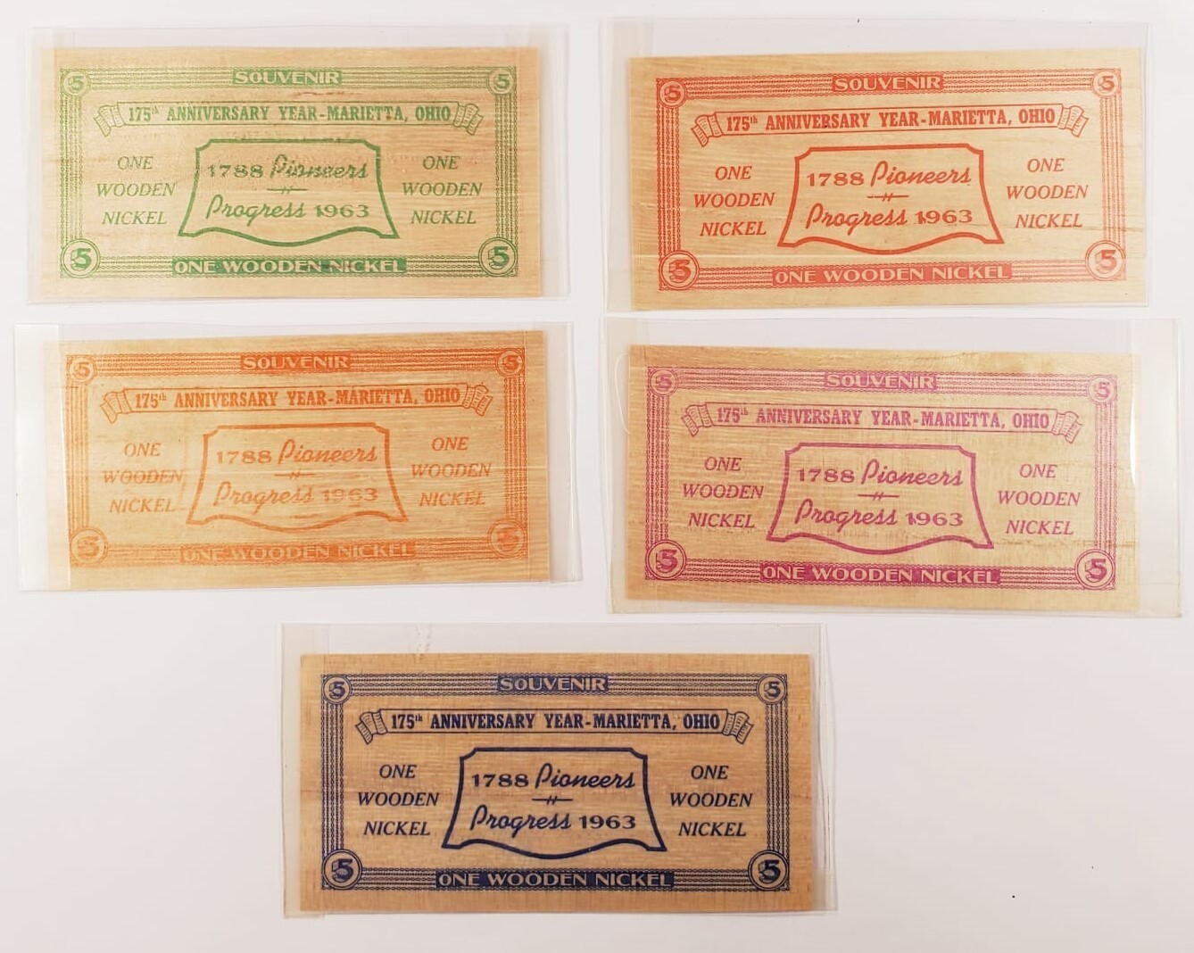 Marietta, OH 1963 175 Anniversario Un Nichel Di Legno Lotto Di 5