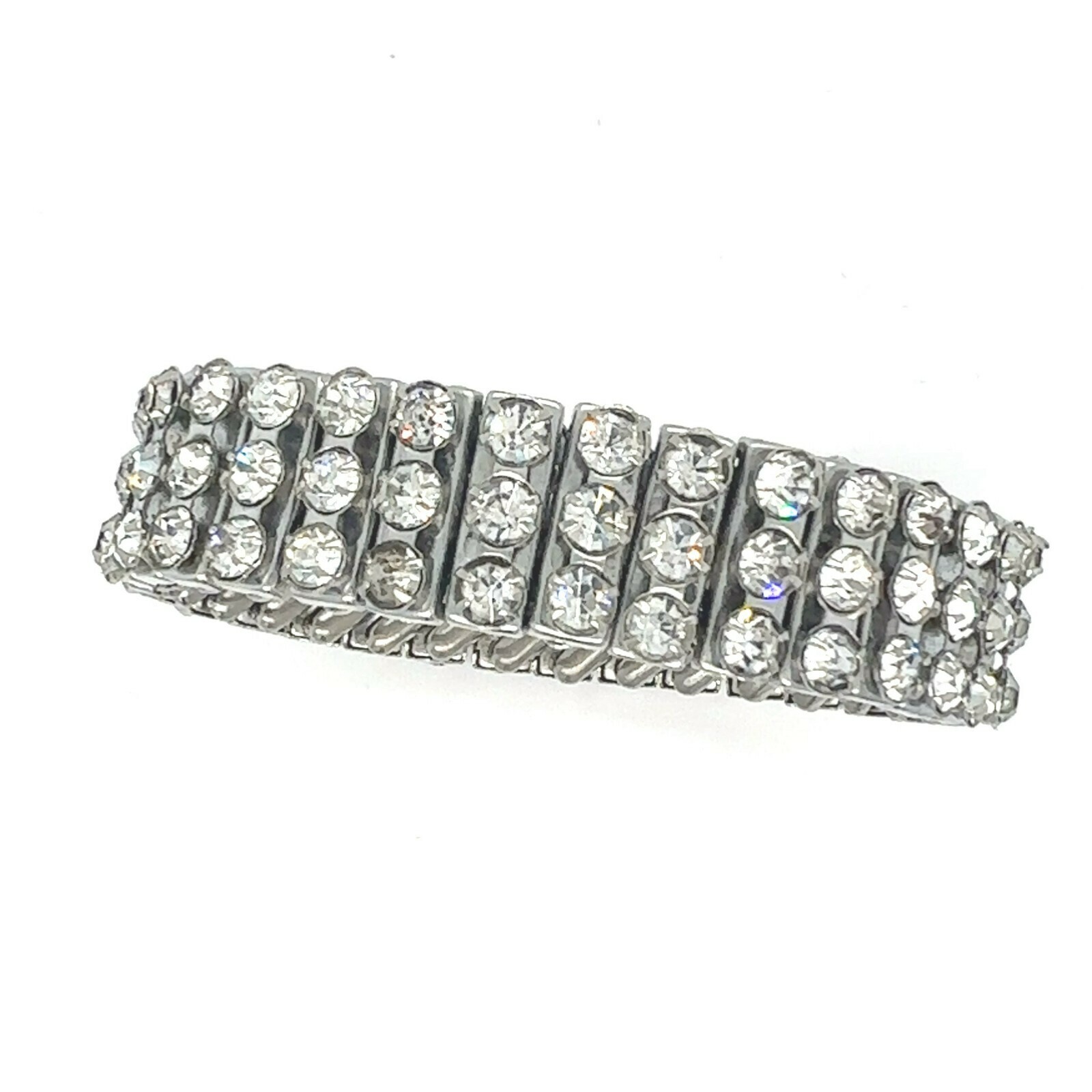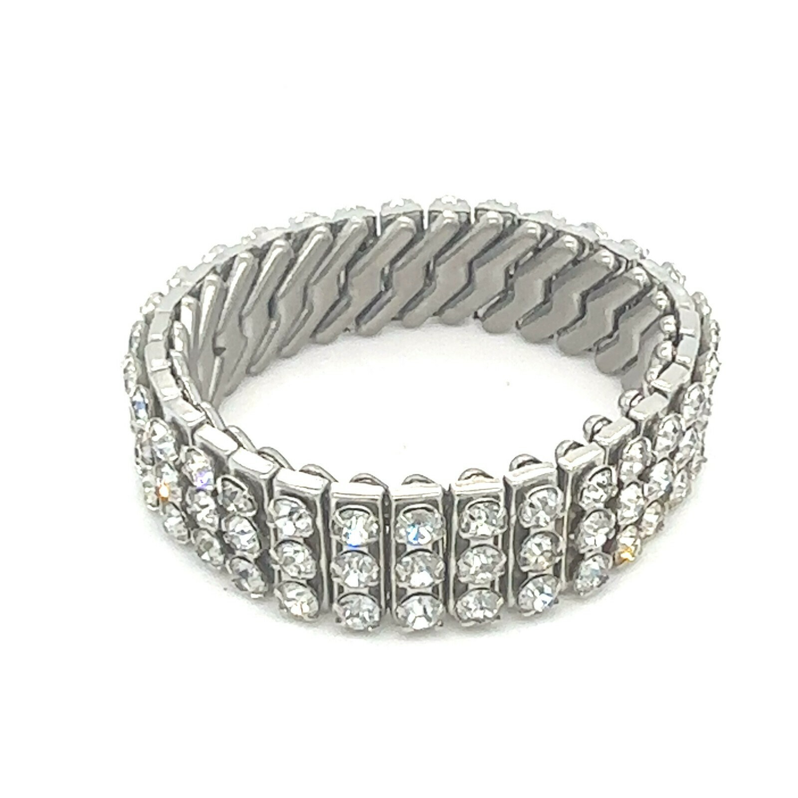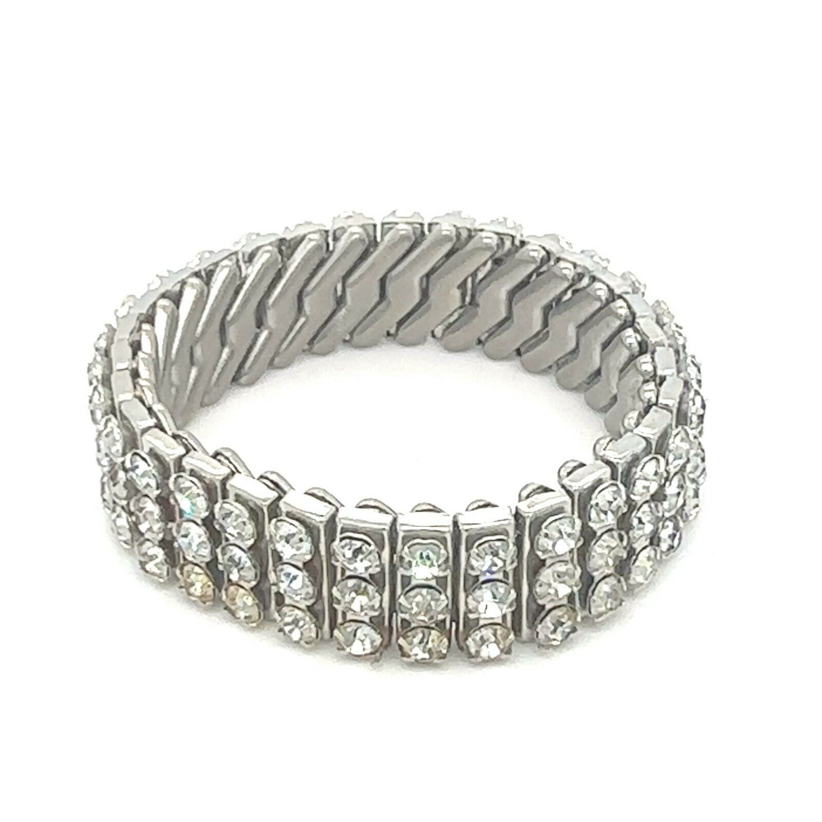 Bracelet en expansion avec des rangees de trois pierres de pate rondes sur le style en expansion du style accordeon.