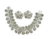 Le clip Florette sur les boucles d'oreilles et le bracelet assorti comprennent des strass fumees.