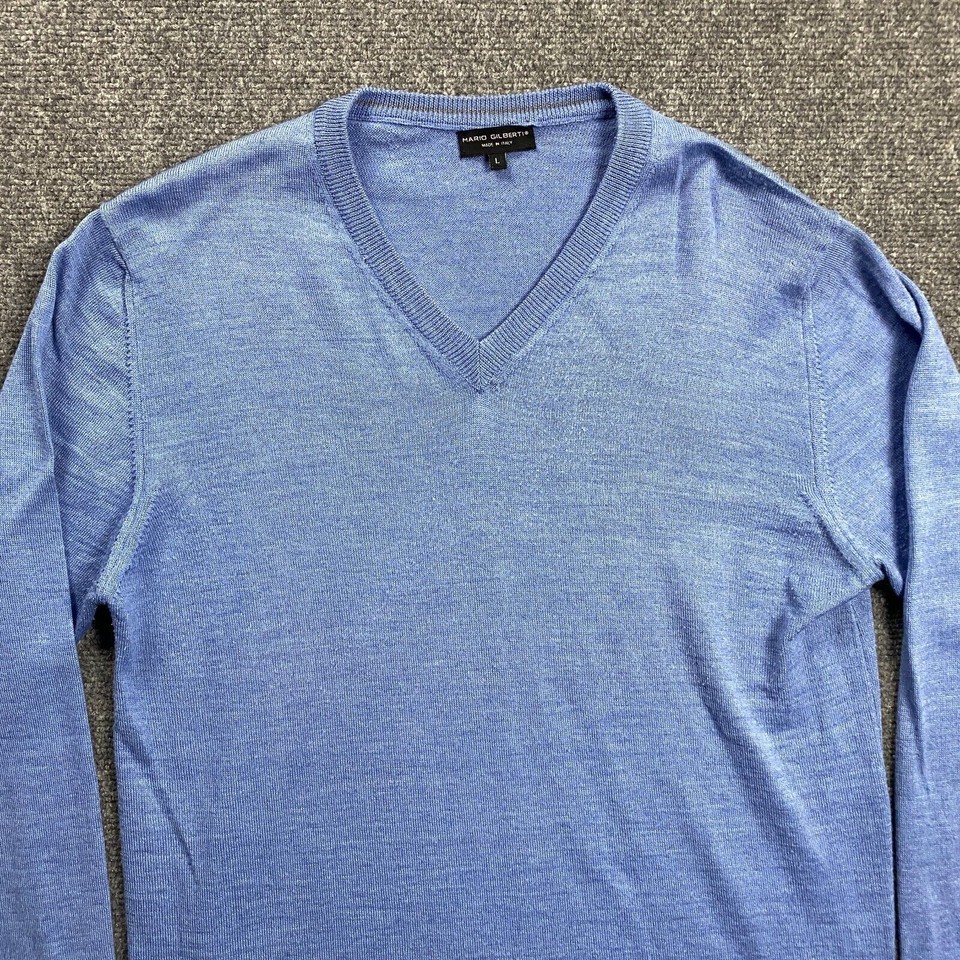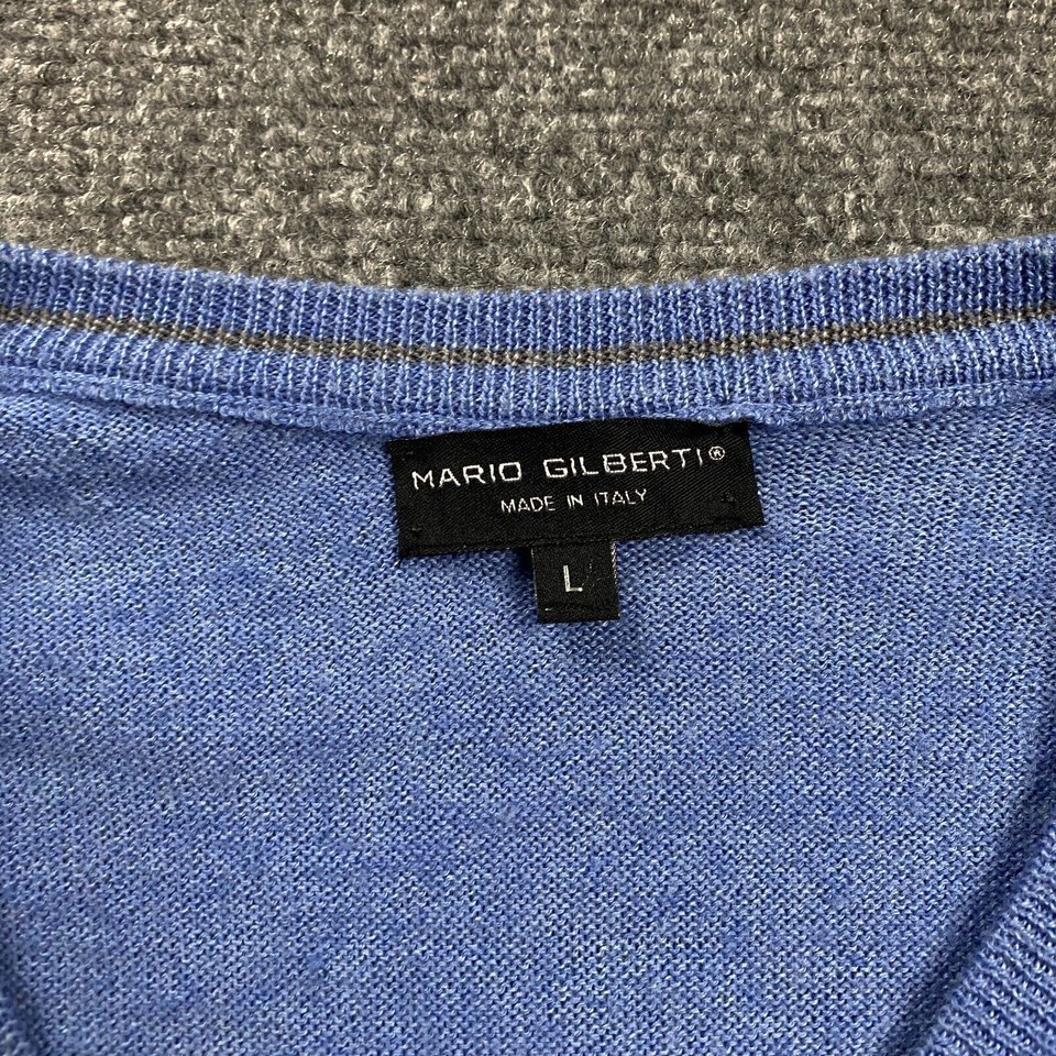Mario Gilberti Sweater Men's Large Blue V-Neck 100% Merino Extra Fine Wool