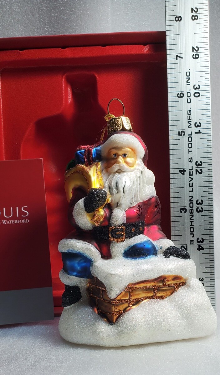 The Marquis by Waterford Down The Chimney Santa ornament is a festive and charming addition to any holiday decor. Made of glass in vibrant multicolor, this collectible piece features Santa Claus descending down the chimney, adding a touch of whimsy to your Christmas tree. With the prestigious Waterford brand name behind it, this ornament is sure to bring joy and sparkle to your seasonal celebrations. Amazingly well taken care of, comes from our pet free, smoke free home to you! Add this absolutely beautiful Christmas ornament from Macy's to your tree!