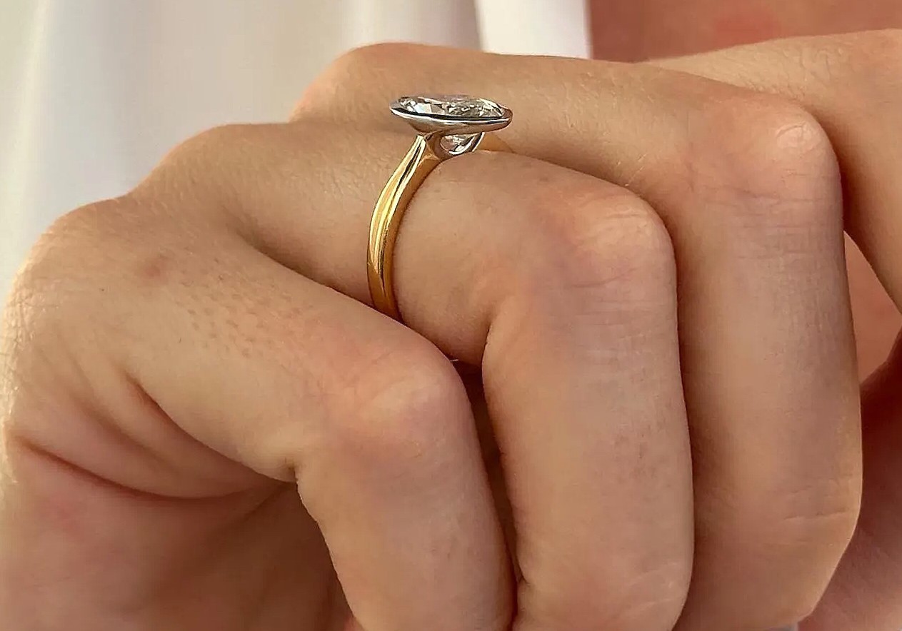 Design: The ring features a bezel setting, allowing the diamond to take center stage. The simple yet elegant design ensures that the ring will remain stylish for years to come.