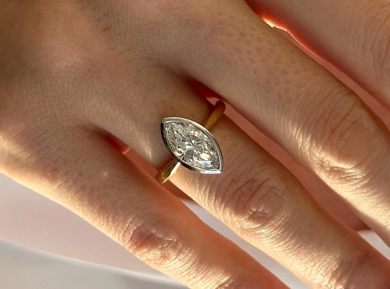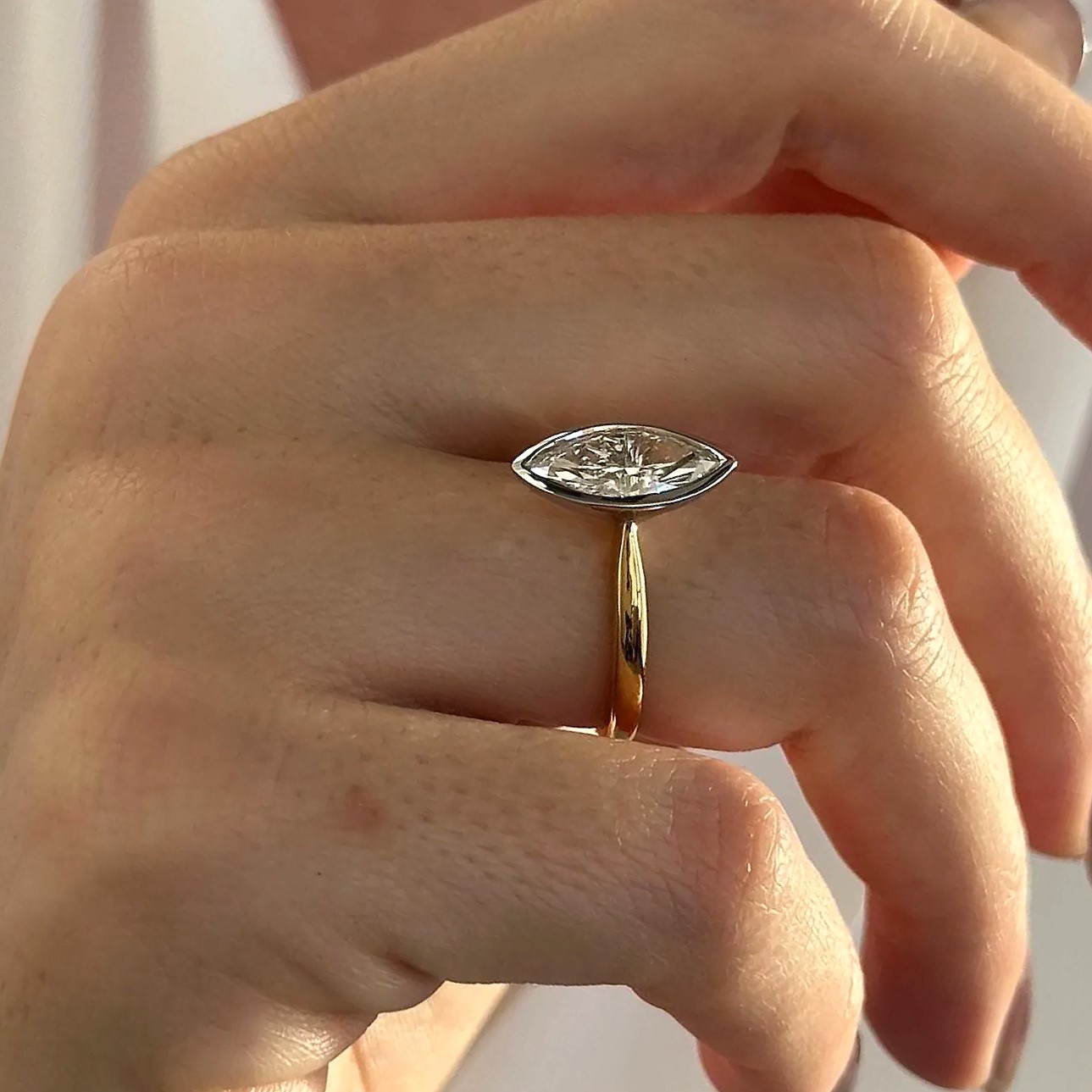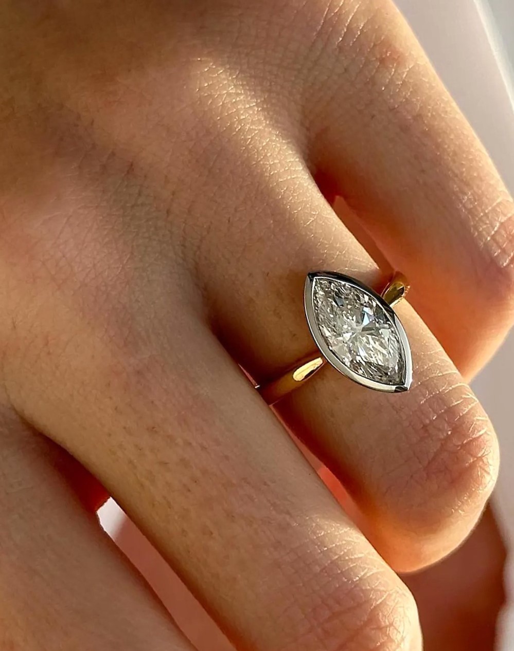 - Marquise solitaire engagement ring, Lab diamond ring, 14k two tone gold ring