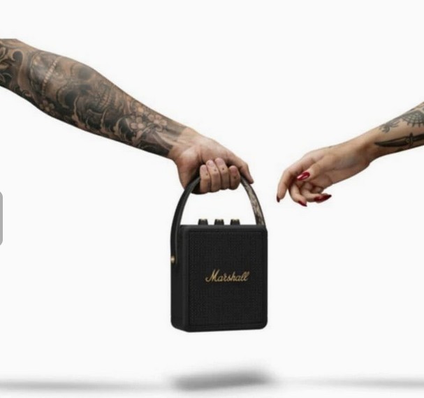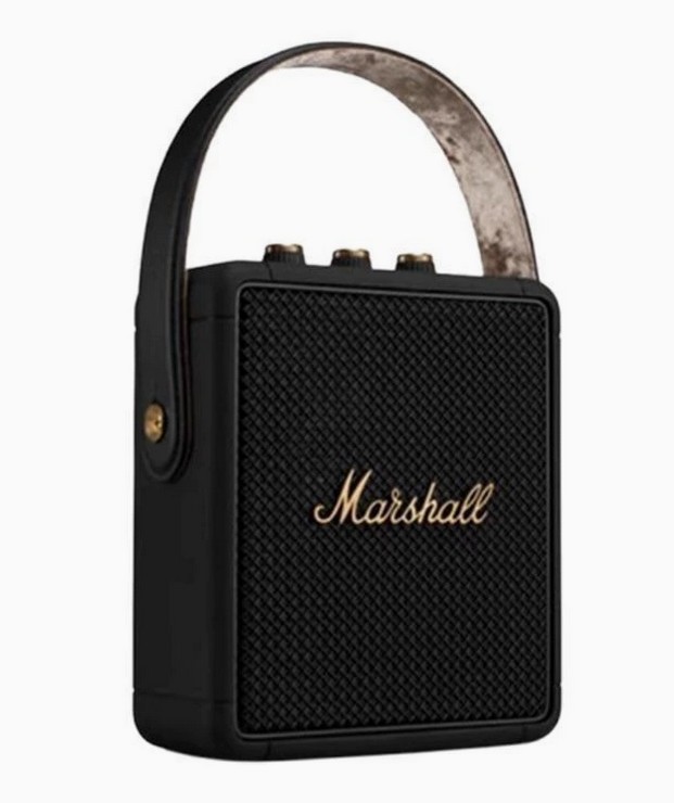 - Marshall Stockwell II Portable Bluetooth Speaker, Black and Brass