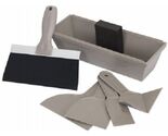 7 piece, drywall repair kit, a great all-in-one kit that gives you all the tools to repair drywall or for small finishing jobs, includes: a 8 inch blue steel taping knife, inside corner tool, plastic putty knives, sanding sponge 10 inch mud PAN, a great item for any home owner looking for the tools to Patch a Hole. This product is manufactured in china. Excellent for industrial and domestic use.