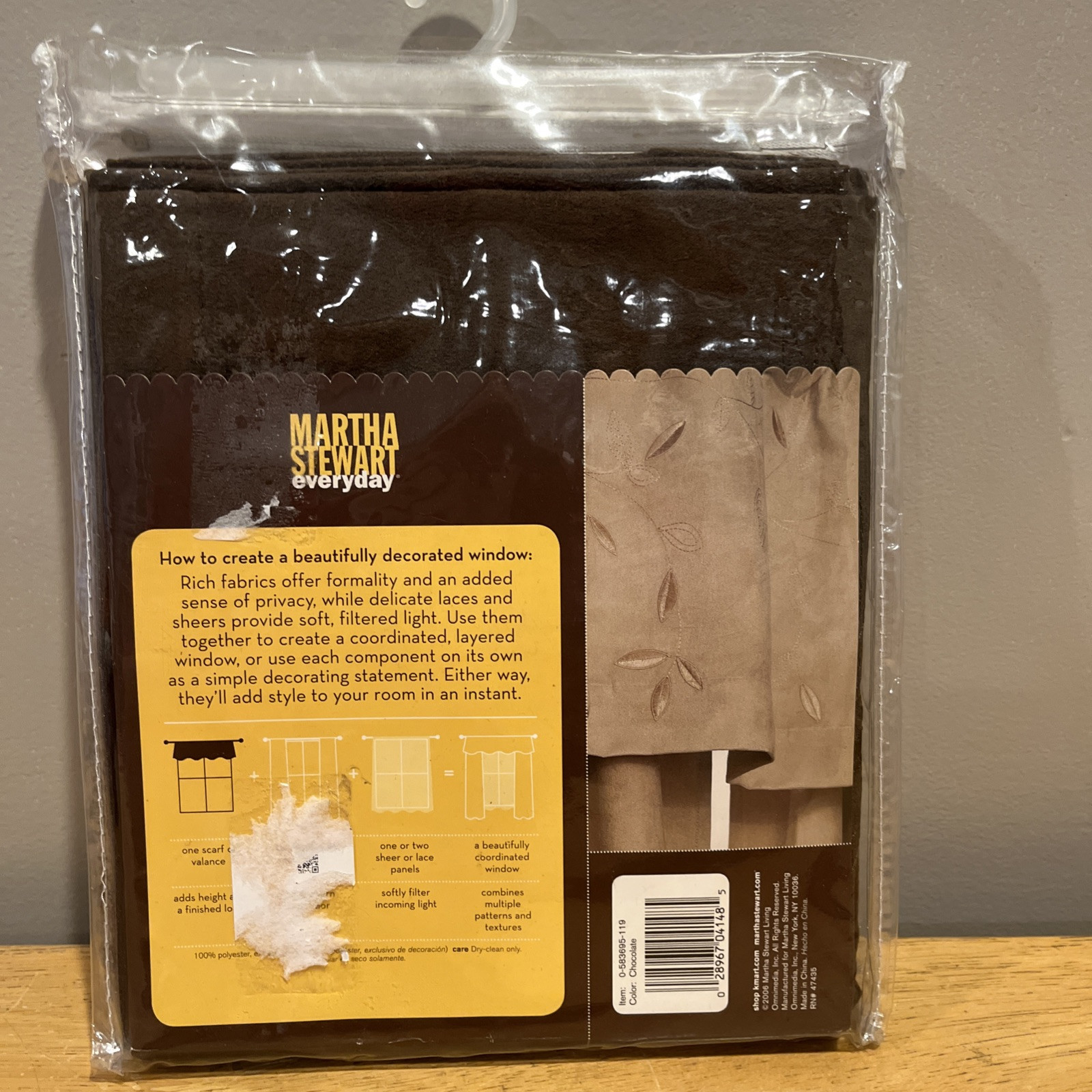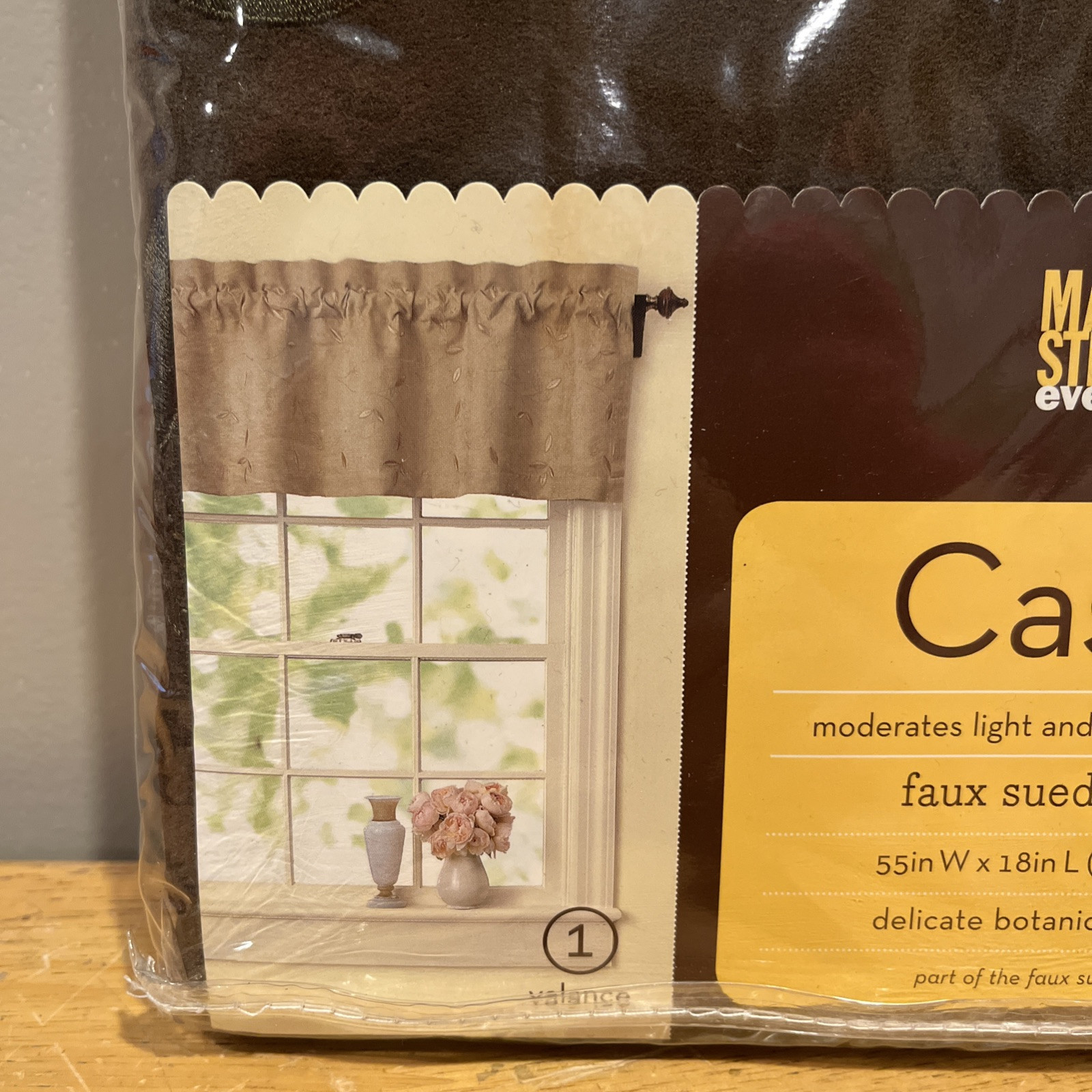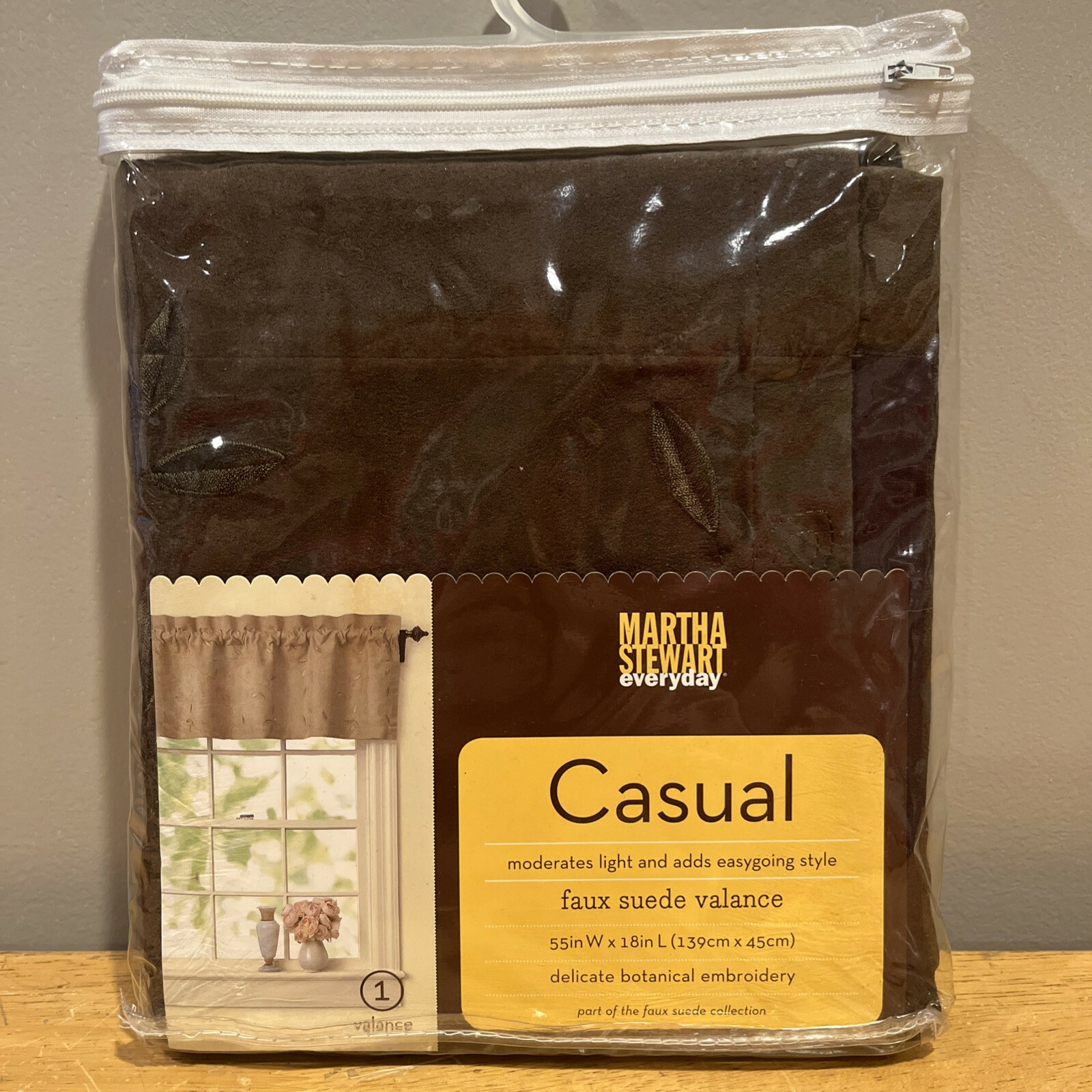 - Martha Stewart Faux Suede Valance Botanical Embroidery Chocolate Brown 55x18”