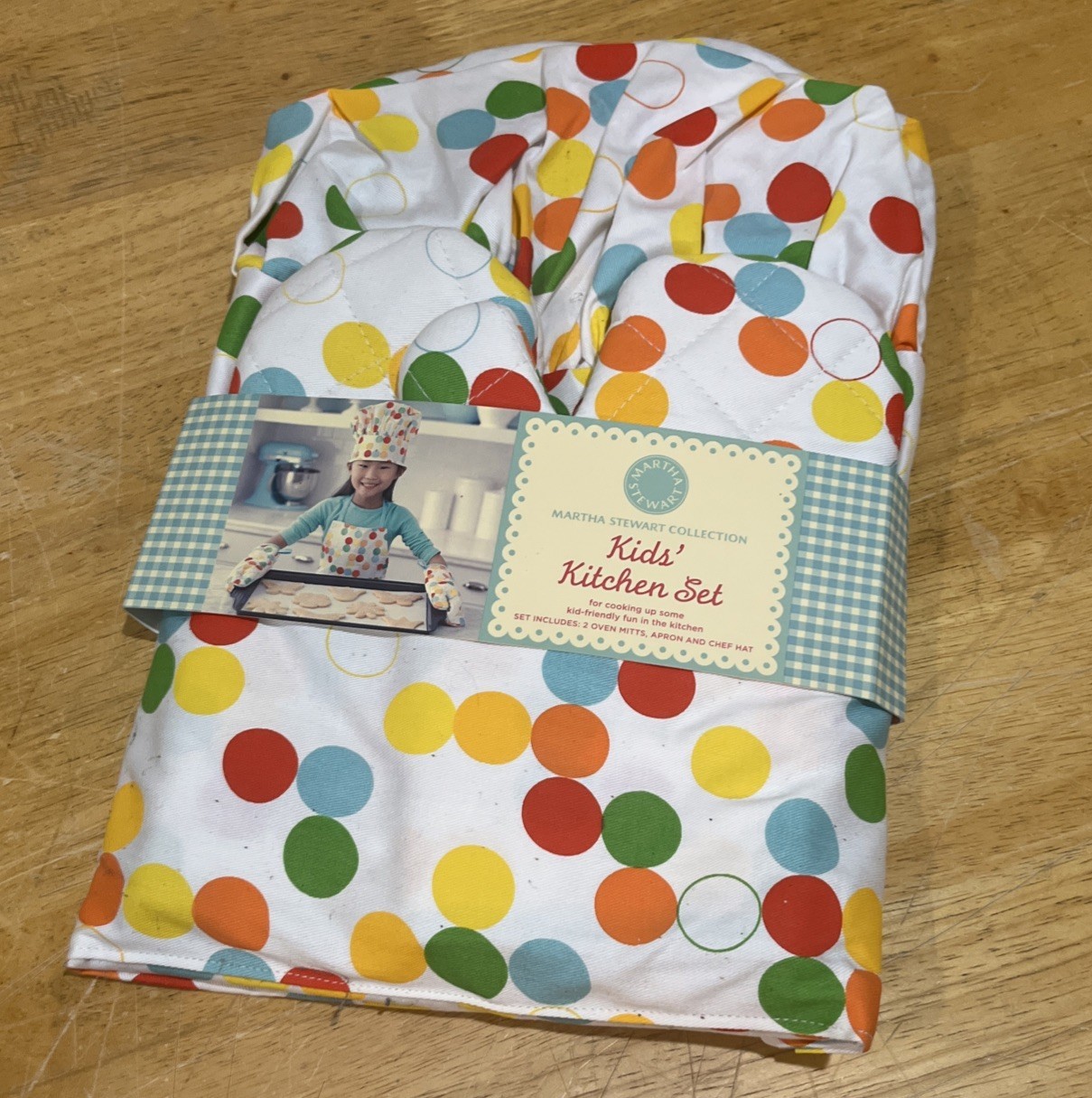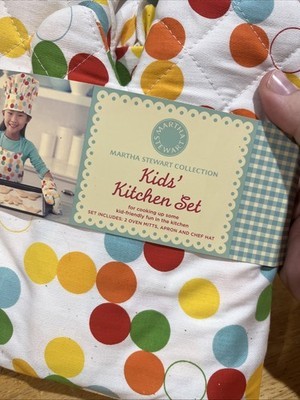 - Martha Stewart Kids Kitchen Kit Polka Dot Baking Apron Oven Mitts Chef Hat