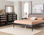 - Marzenia Beige Fabric and Black Wood Queen 4Pc Bedroom Set