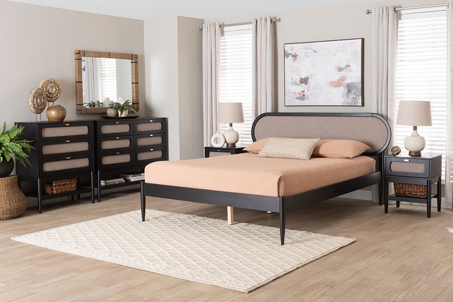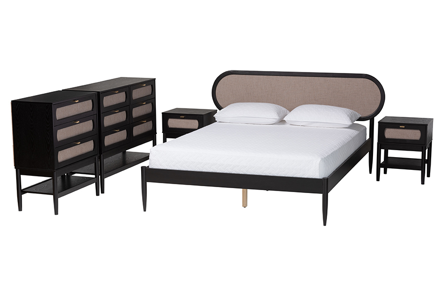 - Marzenia Beige Fabric and Black Wood Queen 5-Piece Bedroom Set