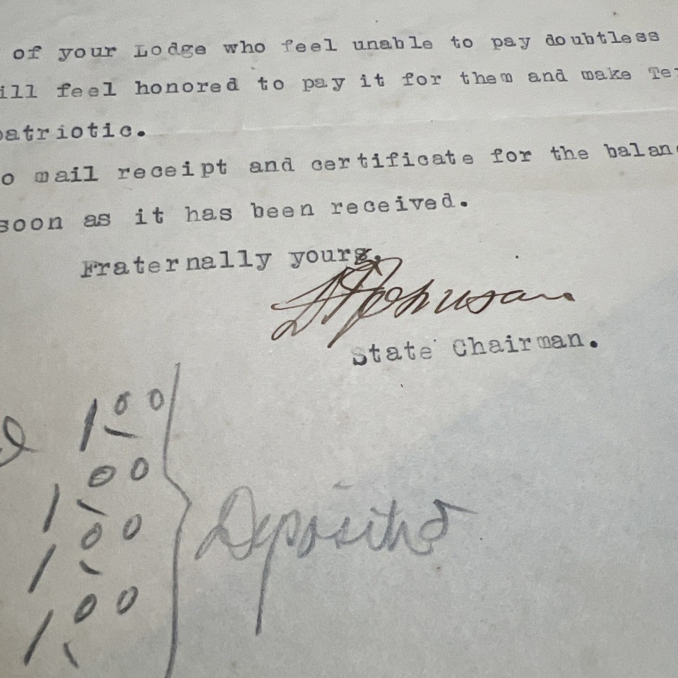 One printed letter sent to Texas lodges from D.F. Johnson, Texas State Chairman
