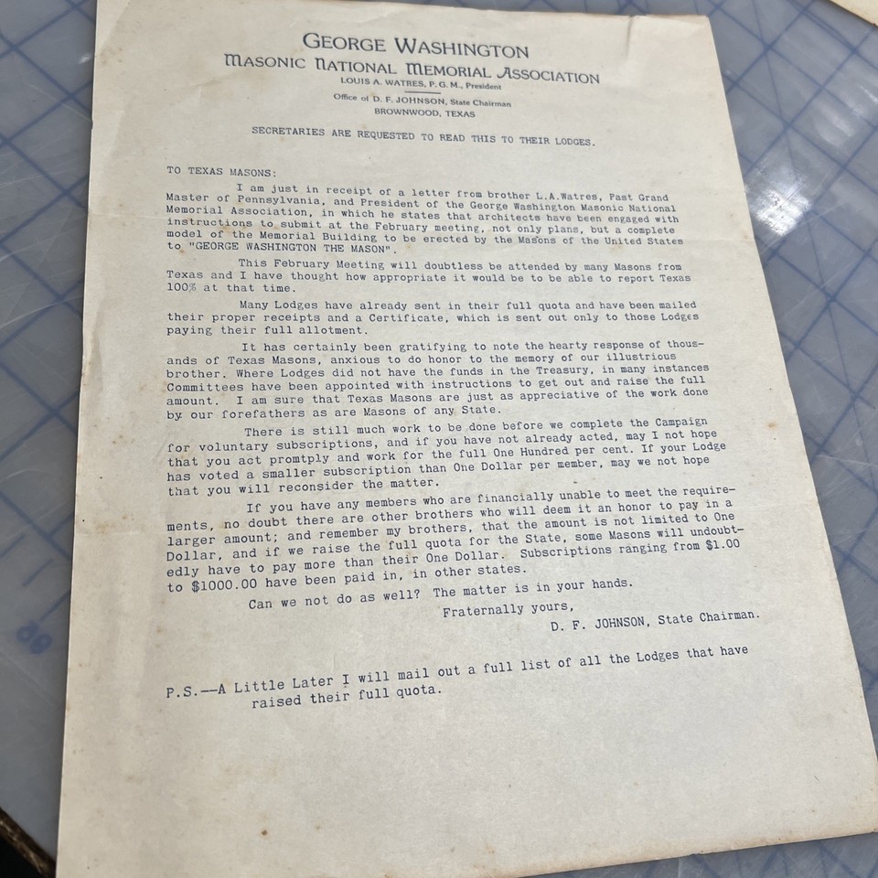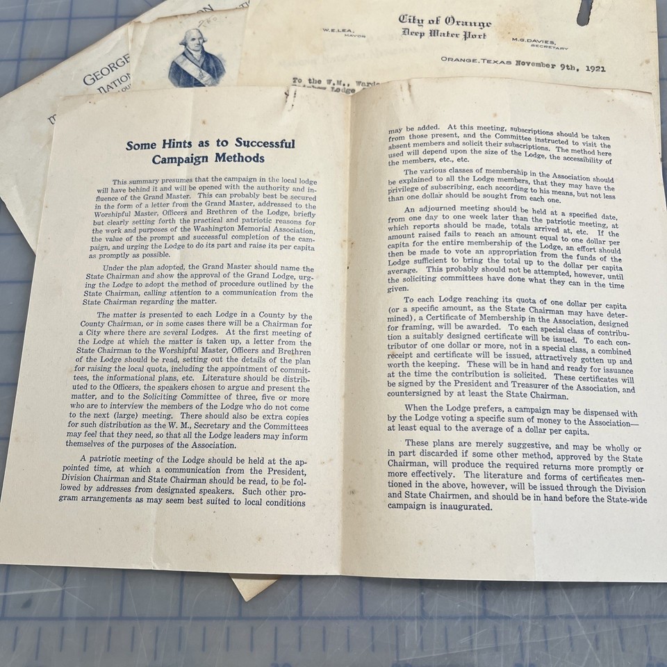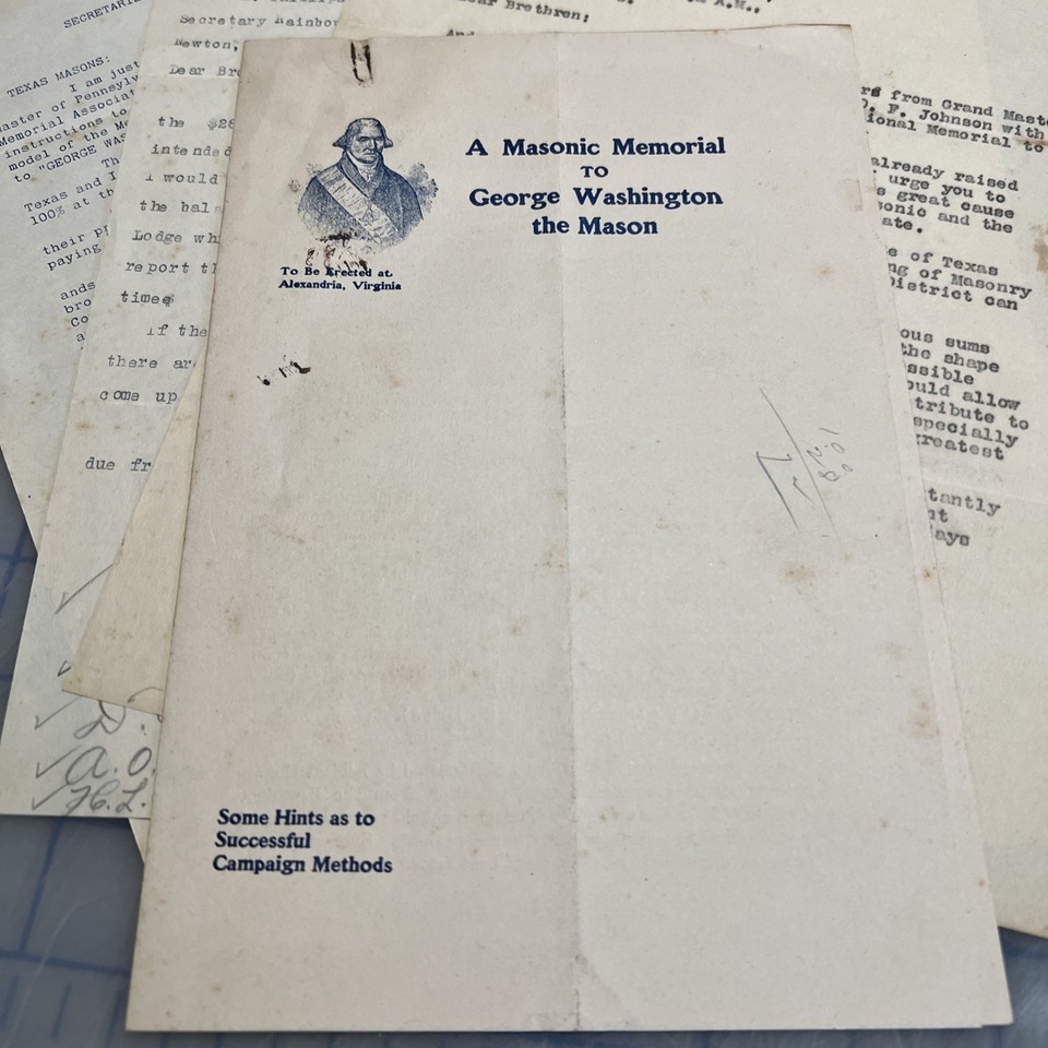- Masonic Ephemera 1921 Memorial To George Washington Fundraising Texas Letters