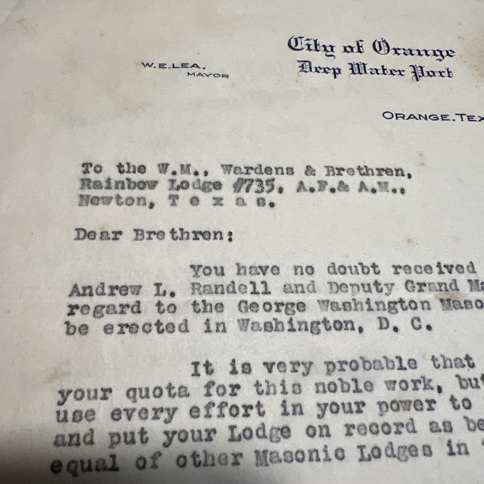Masonic Ephemera 1921 Memorial To George Washington Fundraising Texas Letters
